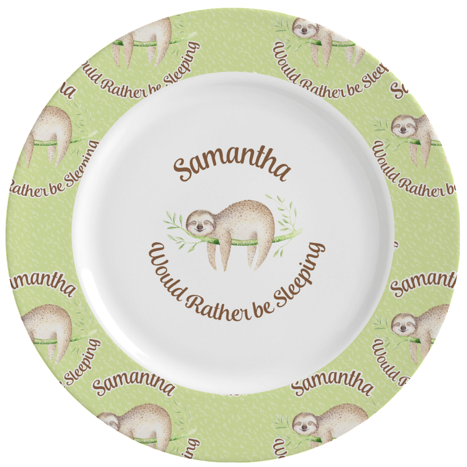 With this custom dinner plate, your have the option of personalizing the rim with an attractive pattern, and then displaying a name, graphic, or text in the center of the plate, against a white background. The exterior of this plate is also the same classic, white color. A glaze coats your plate, making your vividly colored design seem even more vibrant.