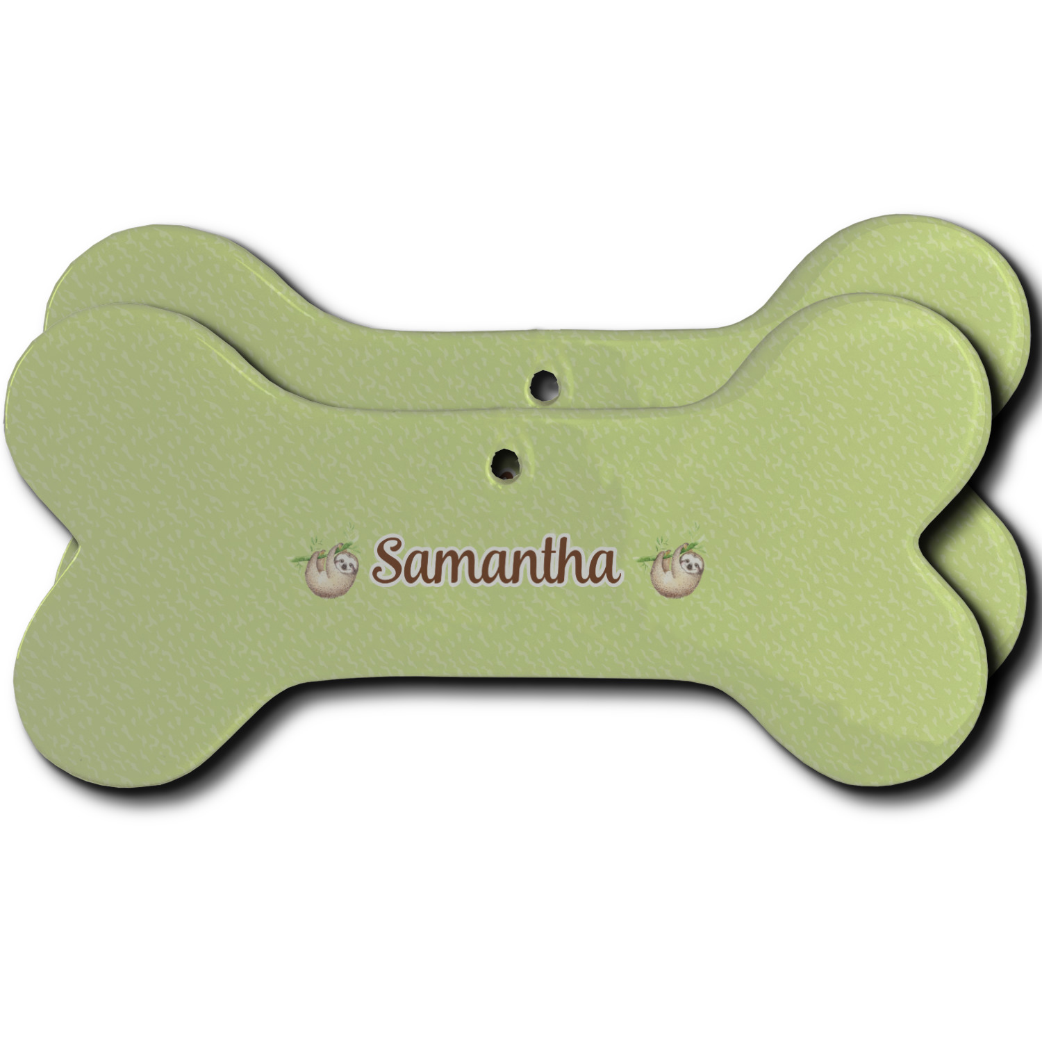 Our dog Christmas ornaments are a ceramic material with a bone-shaped structure hung horizontally. We offer two printing styles to personalize your furry friend's ornament! Choose a one-sided printing, perfect for wall decor, memorial accessory, or doghouse nameplate! Create a double-sided ornament perfect for adorning the Christmas tree. Each dog bone ornament is approximately 4.75" x 2.25" and is printed here in the USA.