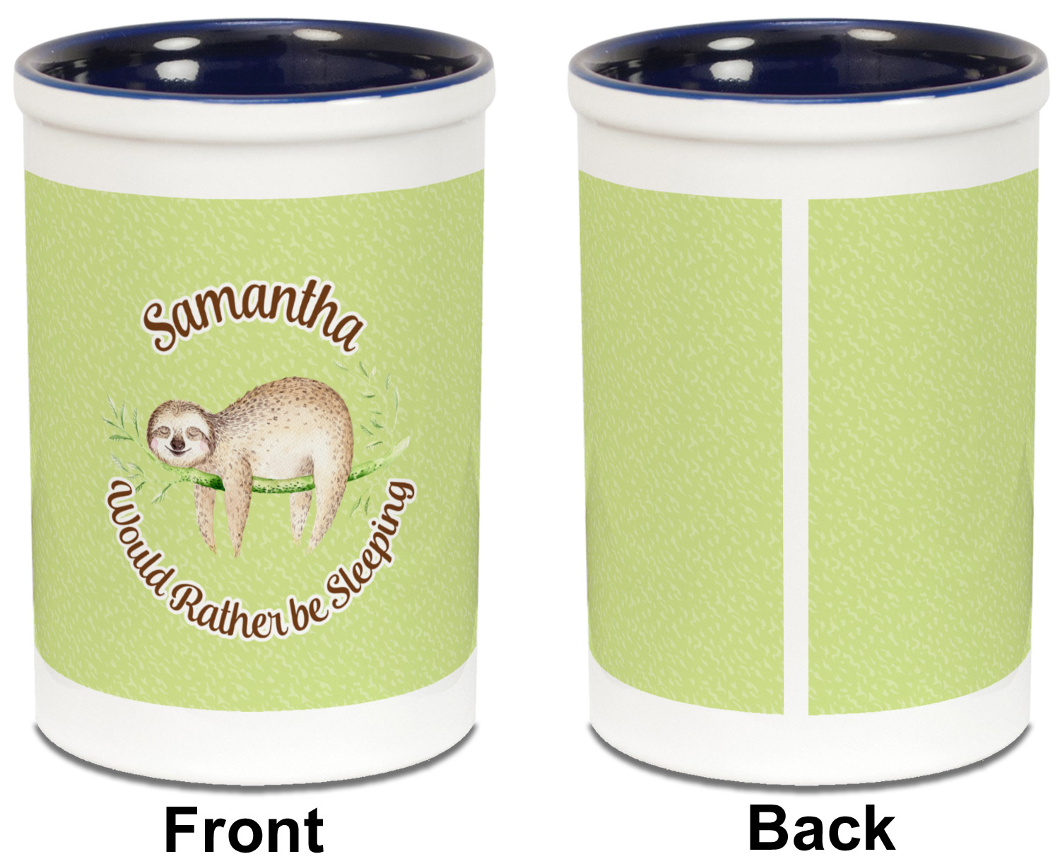 This design features a fun-loving brown sloth right in the center to remind you to take it easy. The subtle green spotted background gives an extra sense of peace and tranquility.