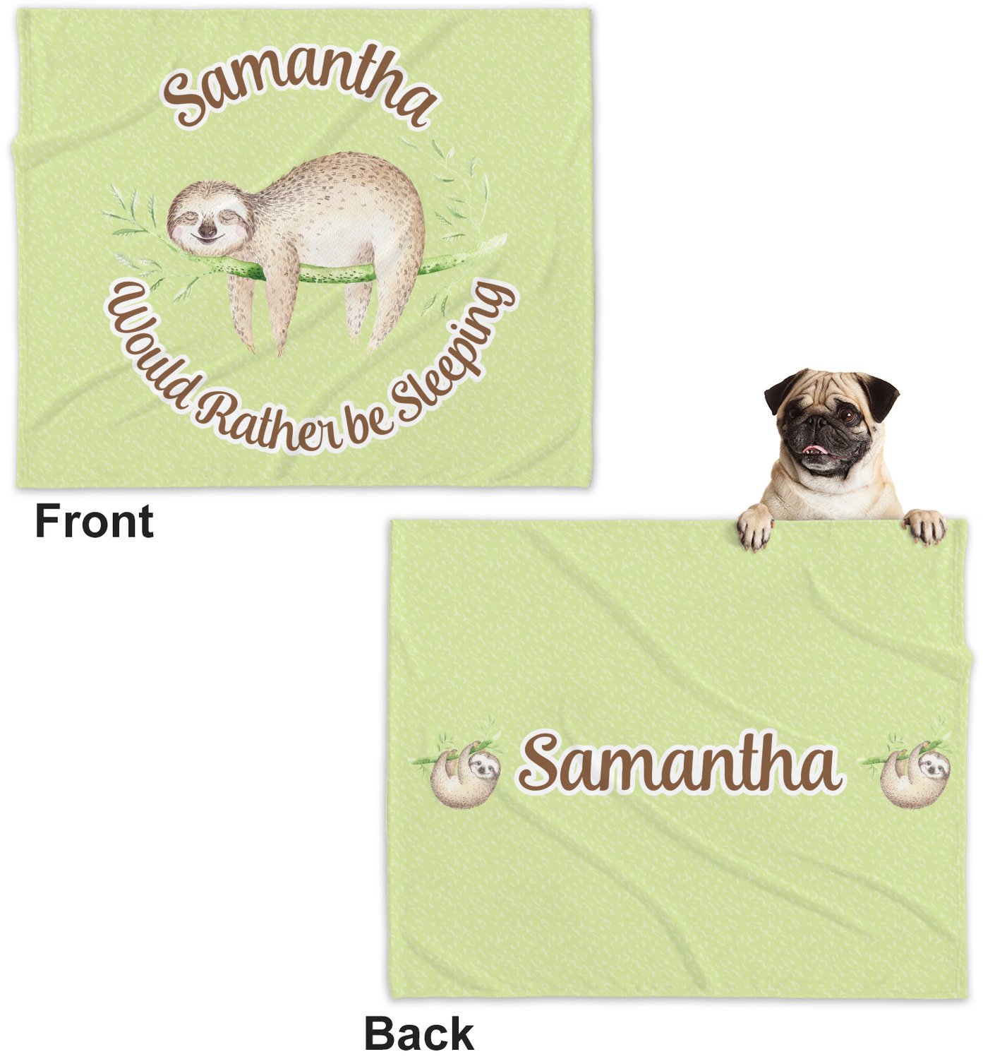 These dog blankets are crafted from a gentle, soft-to-the-touch, minky material. We print your customizations, either matching or differing, on both the top and underside of the blanket. These personalized dog blankets are available in two sizes: regular and large. Our regular size, at 40" x 30", accommodates small and some medium size dogs. At 60" x 50", our large dog blanket is a better fit for bigger breeds. Though specialized for dogs, these blankets still make a thoughtful gift for your favorite feline, or any other pet in mind!