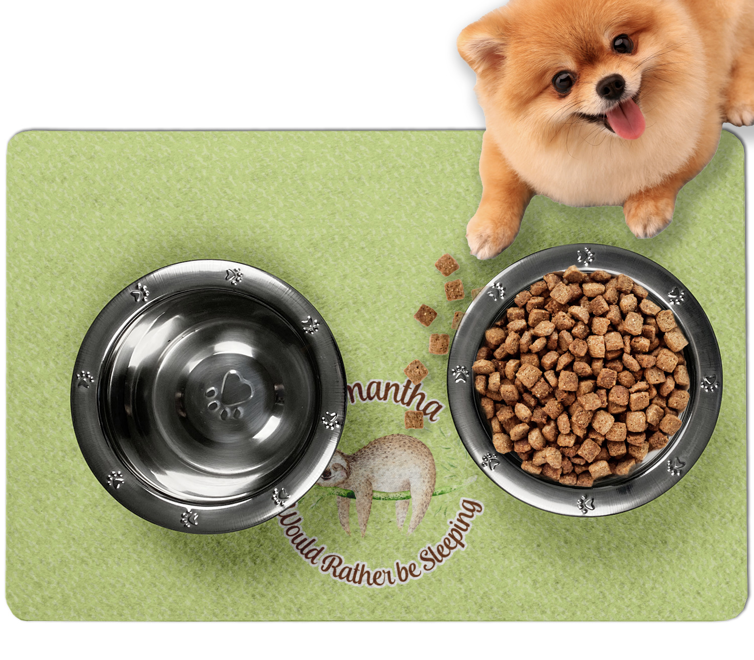 This dog bowl mat, fabricated from polyester, proudly displays your customized design on its top, while its bottom includes a non-slip rubber. This feature allows it to remain firmly in place, even when your dog spills his/her water. With 3 sizes available (18" x 12", 24" x 18", 30" x 24"), the pet food mat has ample space for both a food and water bowl for any sized dogs. Though specified for dogs' use, these mats are also a splendid option for cats.