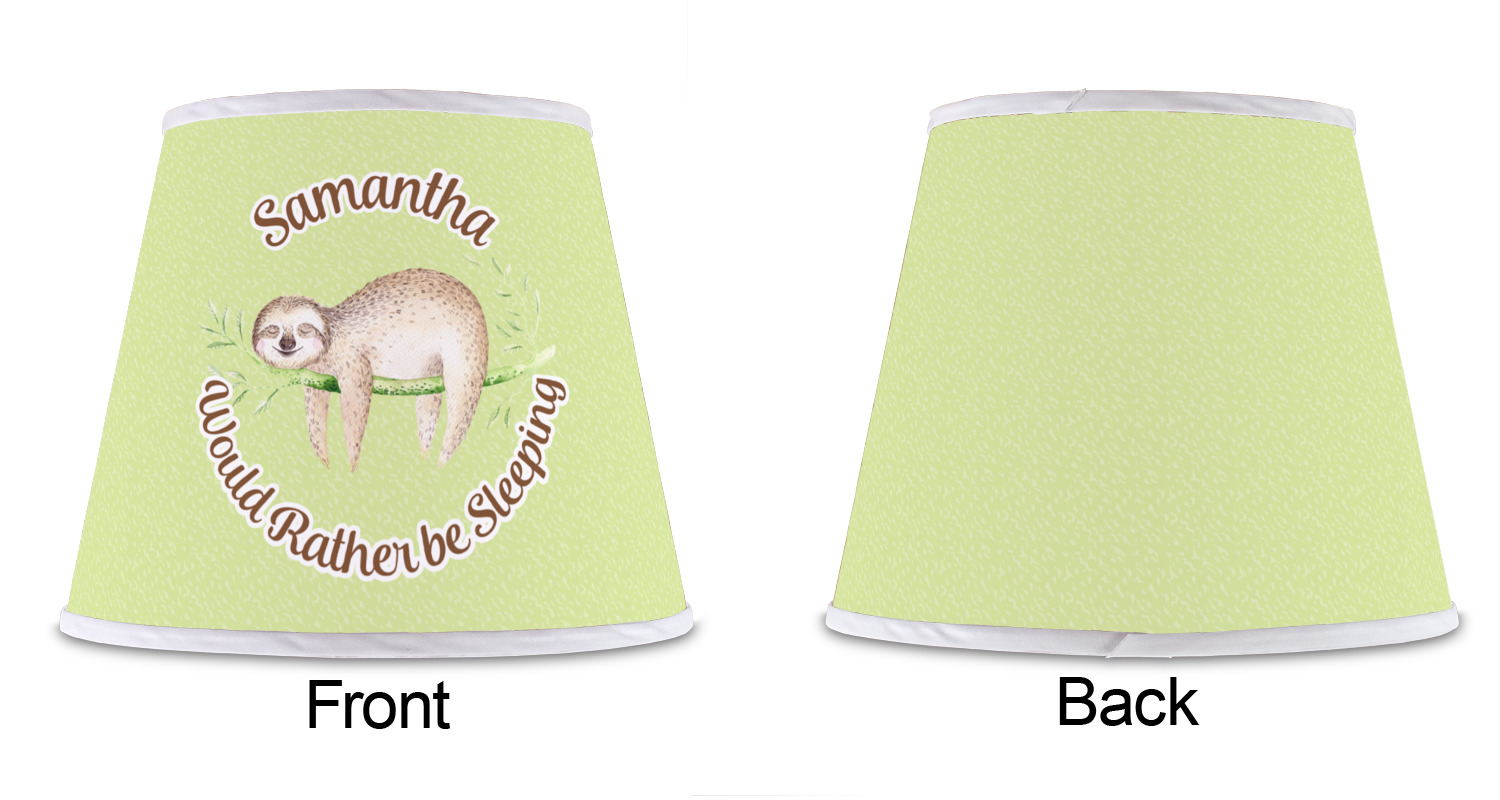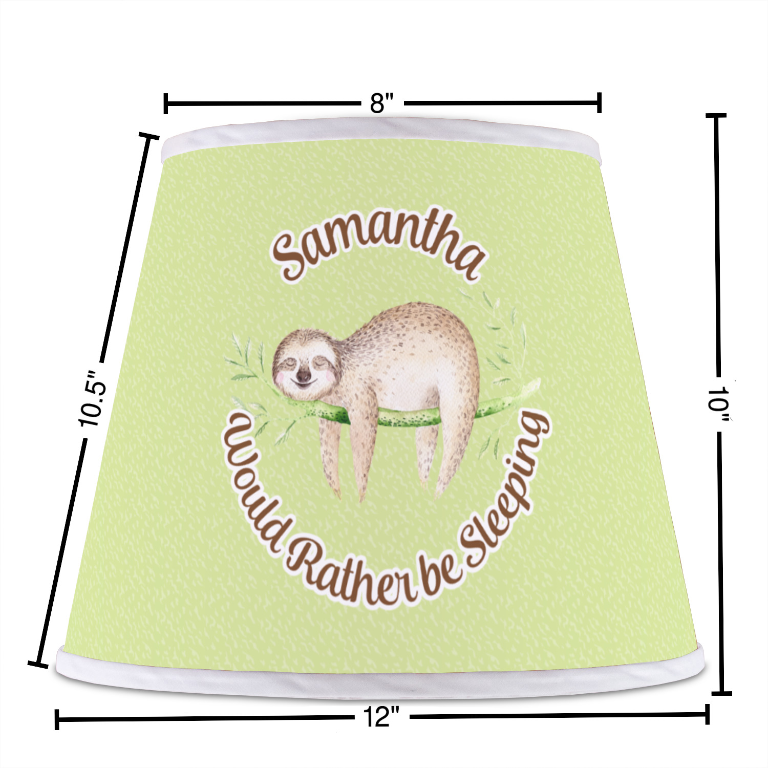 The base of this lampshade is 12 inches in diameter, and the top spans 8 inches in diameter. The total height of the lampshade is 10 inches. The angled nature of this custom lampshade concentrates the light, making it ideal for smaller spaces. This lampshade is made of matte, polyfilm, and displays your customization in its middle. The top and bottom of this colorful lamp shade are lined with a white fabric ribbon (which can be replaced with black inside the design studio) which frames your design and creates a sophisticated finish. As an UNO fitter lampshade, this unique lamp shade will fit a variety of bases.