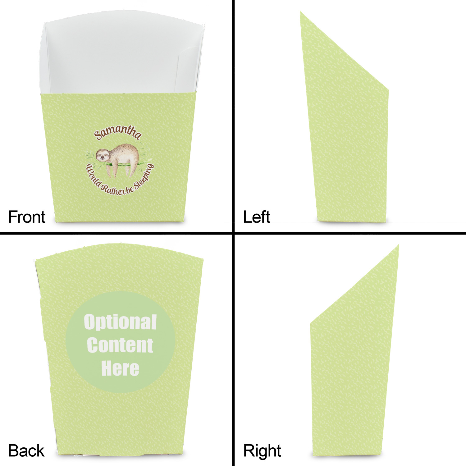 These favor boxes are printed in full color on quality cardstock - so coordinating the french fry favor boxes to match your event's themes or colors should be a breeze. You can upload your own design including artwork, logos or photos