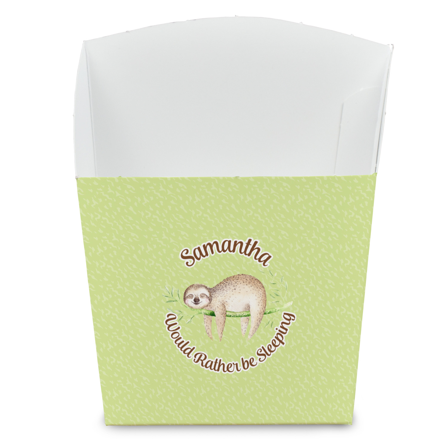 Since it is an open box, it works very well as a party snack cup (instead of plates) for different types of dry snacks and treats such as popcorn, cheezies, pretzels, chips, twizzlers, etc. This box can easily be carried with a drink all in one hand!