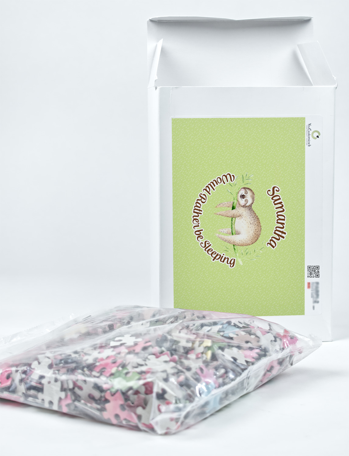 You can also upload your logo or art that you or your kids drew. To create more challenging jigsaw puzzles, you can create a pattern from with your logo or artwork. You can also add other elements such as text or personalization.