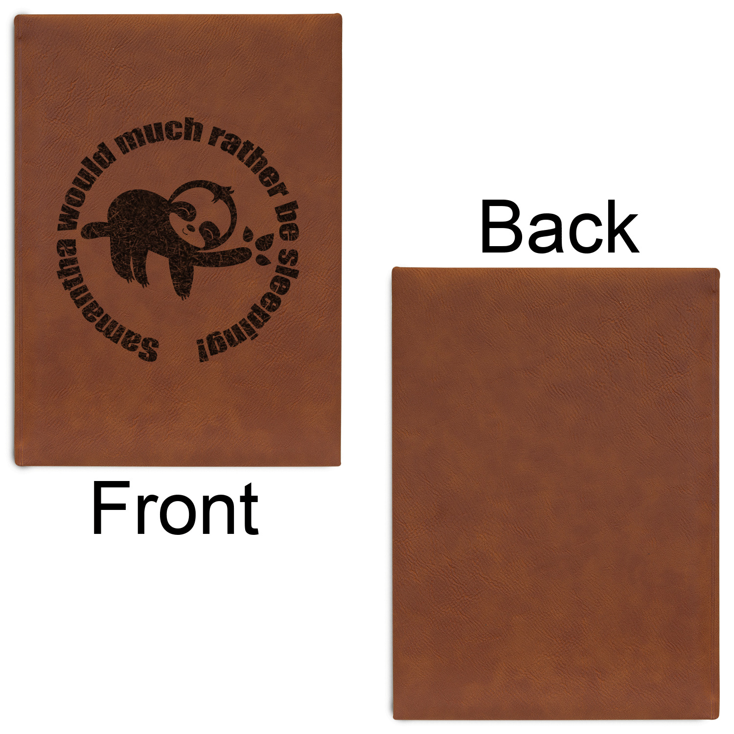 The faux leather covers are a rich cognac / rawhide color and can be customized with your design. From a simple name or monogram or a logo to a detailed mandala - the choice for customization & personalization is truly yours. Customize one of our designs or upload your own.