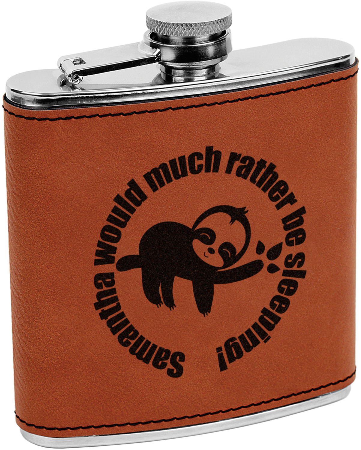 Sip your beverage in a classy fashion with one of our stainless steel flasks! These flasks are sold with an engraved, leatherette wrap that you customize! The refined look of these hip flasks make them the perfect gift for a loved one!