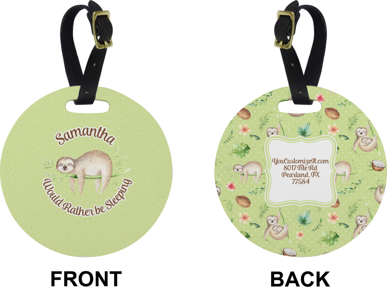 These cute luggage tags are made of a fiber-reinforced, UV-resistant plastic, making them waterproof and durable enough for both everyday use and the rugged adventures of any traveler! A leather strap with holes and a buckle is included with your purchase and can be used to attach your custom luggage tag to any suitcase, backpack, or duffel bag. You can design these travel tags as you wish; your customization will be displayed across the front, while the back will show as little or as much personal information as you want.