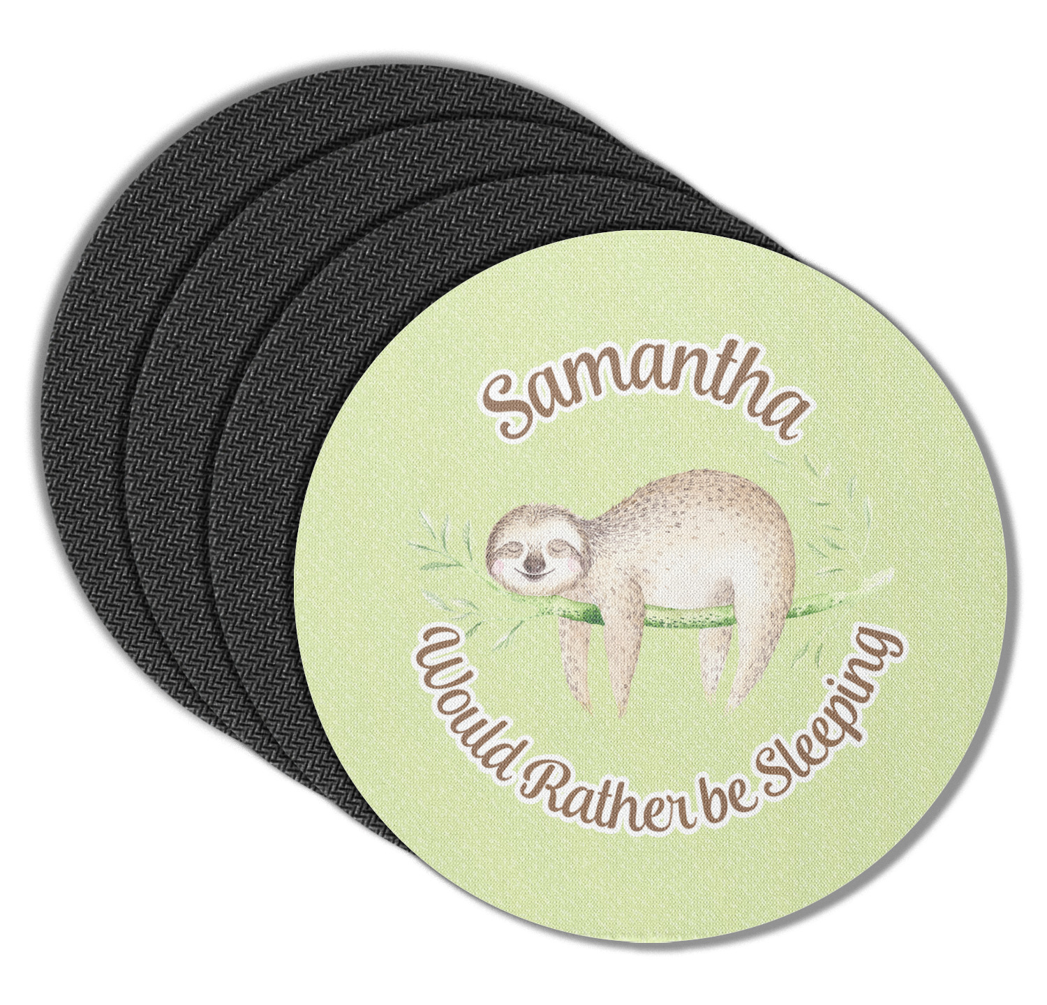 These drink coasters have a smooth, polyester top and a textured, rubber backing on its bottom. The non-slip rubber backing underneath works to keep any spills at bay. At 4 by 4 by 0.25 inches thick, these custom coasters are a suitable size for most drinkware. Your personalization is displayed atop the face of the cup coaster. We sell these rubber coasters in two different shapes: square and round. You can buy each shape as singulars or as a set of 4.