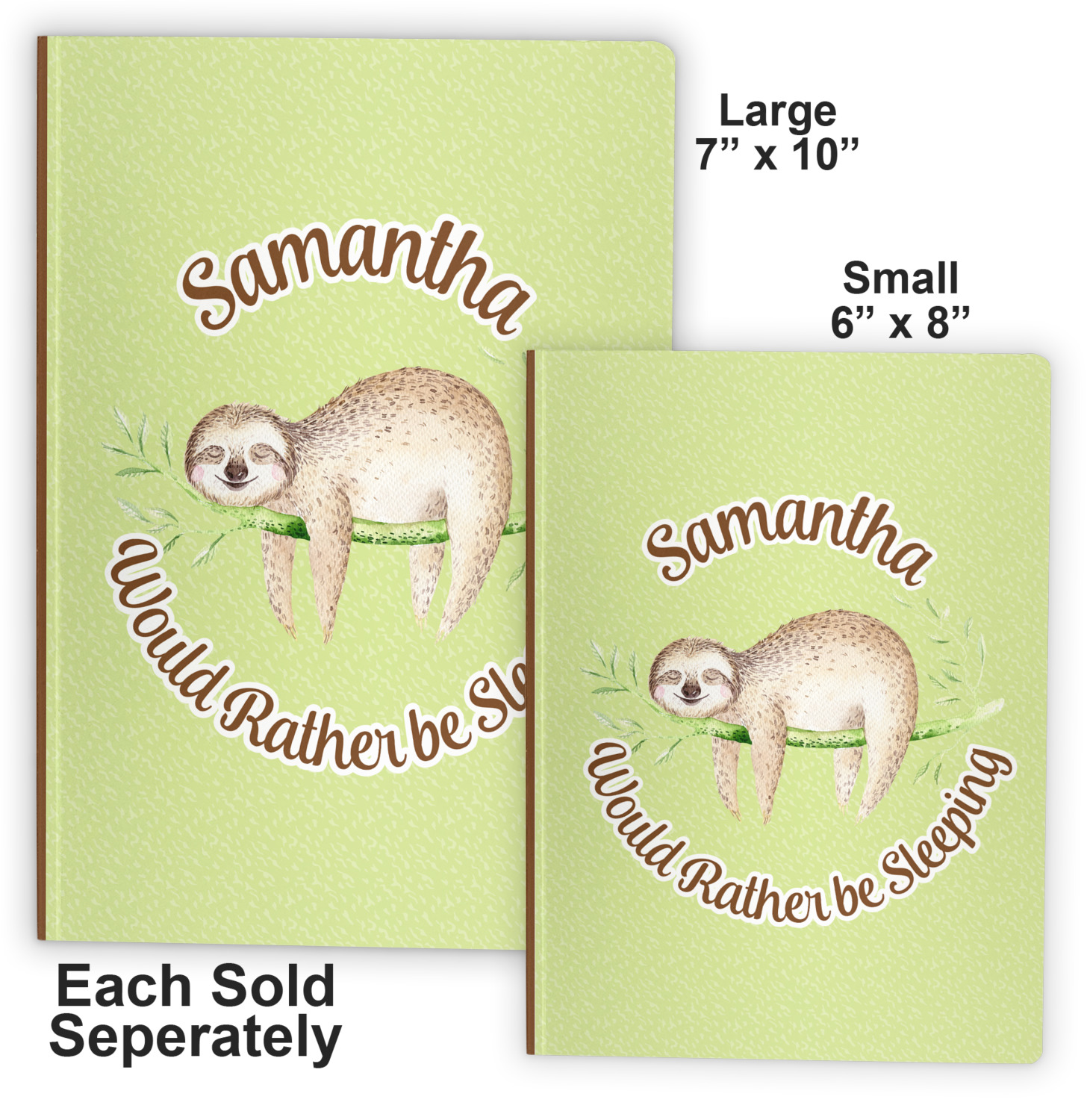 We offer these notebooks in two different sizes. The small notebook is 8" x 5.75", and fits snugly in purses or totes. The large notebook measures at 10" x 7.25", and can be carried in briefcases and backpacks.