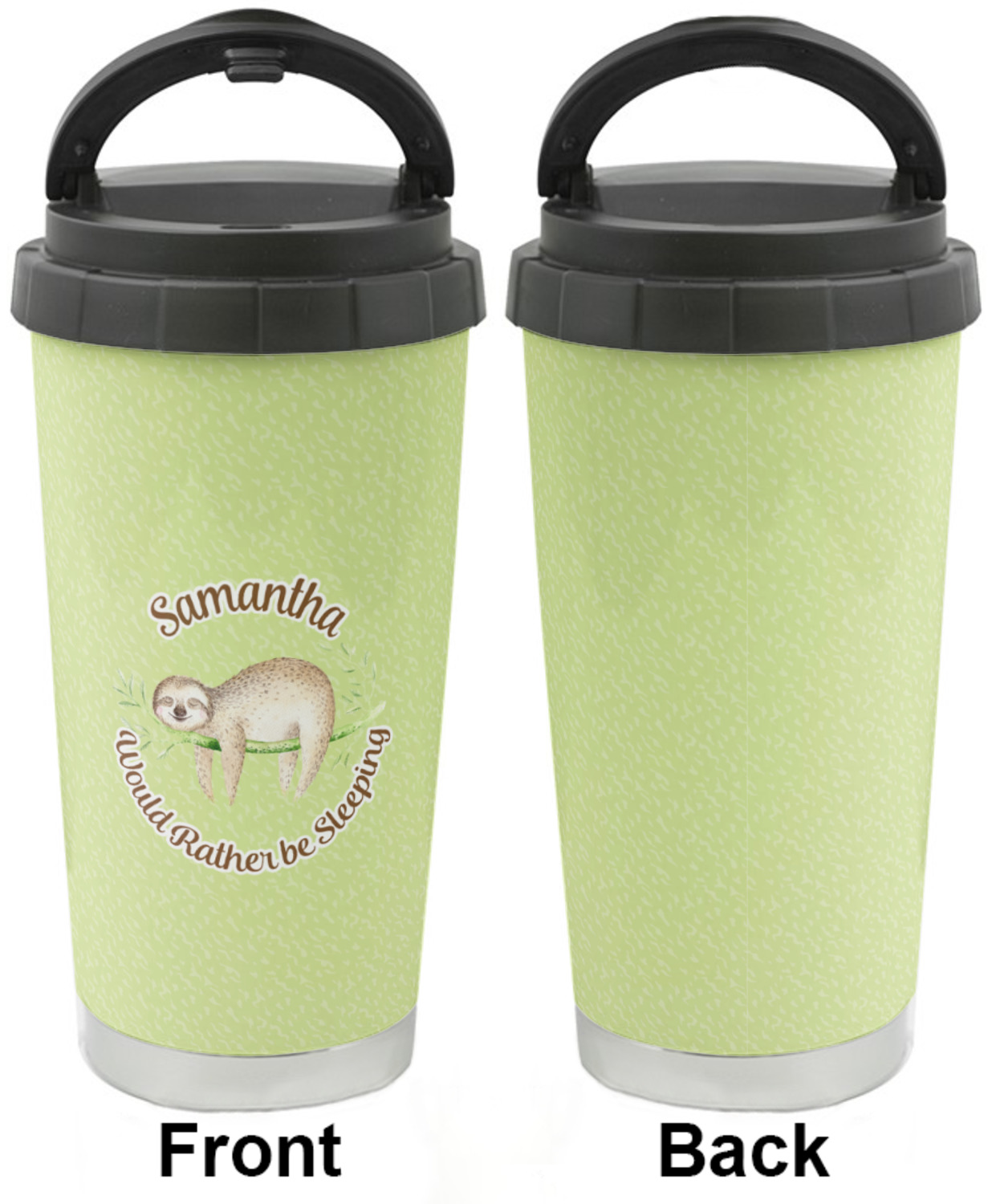 This sleek and tapered 16 oz stainless steel travel cup is a perfect fit in the hand. With the strip of visible stainless steel on the bottom, you'll be feeling classy!