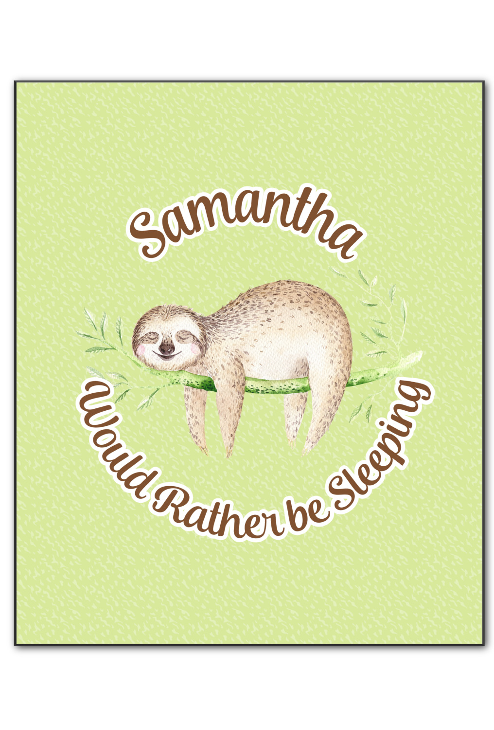 This design features a fun-loving brown sloth right in the center to remind you to take it easy. The subtle green spotted background gives an extra sense of peace and tranquility.