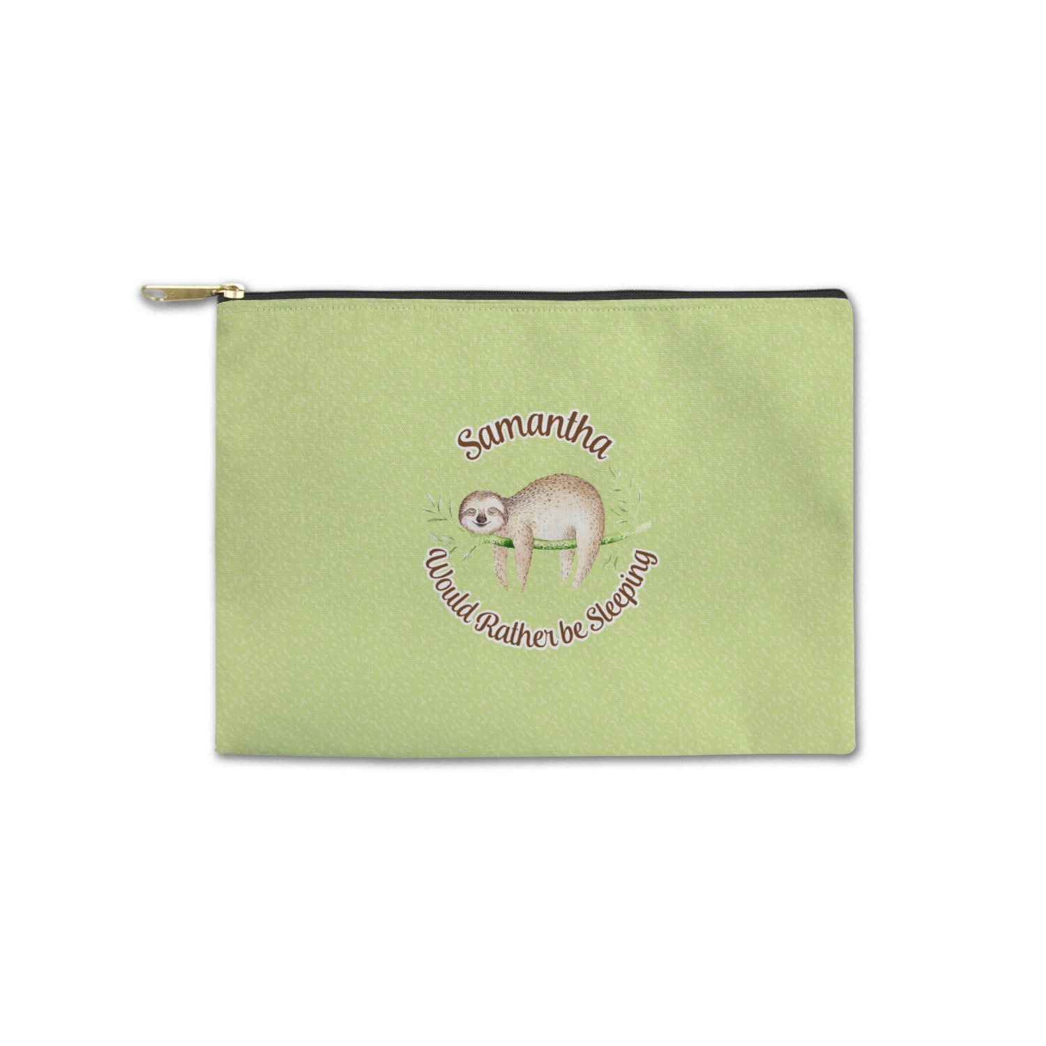 Our zippered pouches are available in two sizes - small: approx 8.5W"x6H and large: approx 12.5Wx8.5H. The pouches are made from a soft & durable canvas fabric that is printed on the outside with your design; the inside has a fused black lining. The printed canvas fabric is then cut and the pouches are sewn right here in the USA. The zipper itself is gold in color and has a round hook.