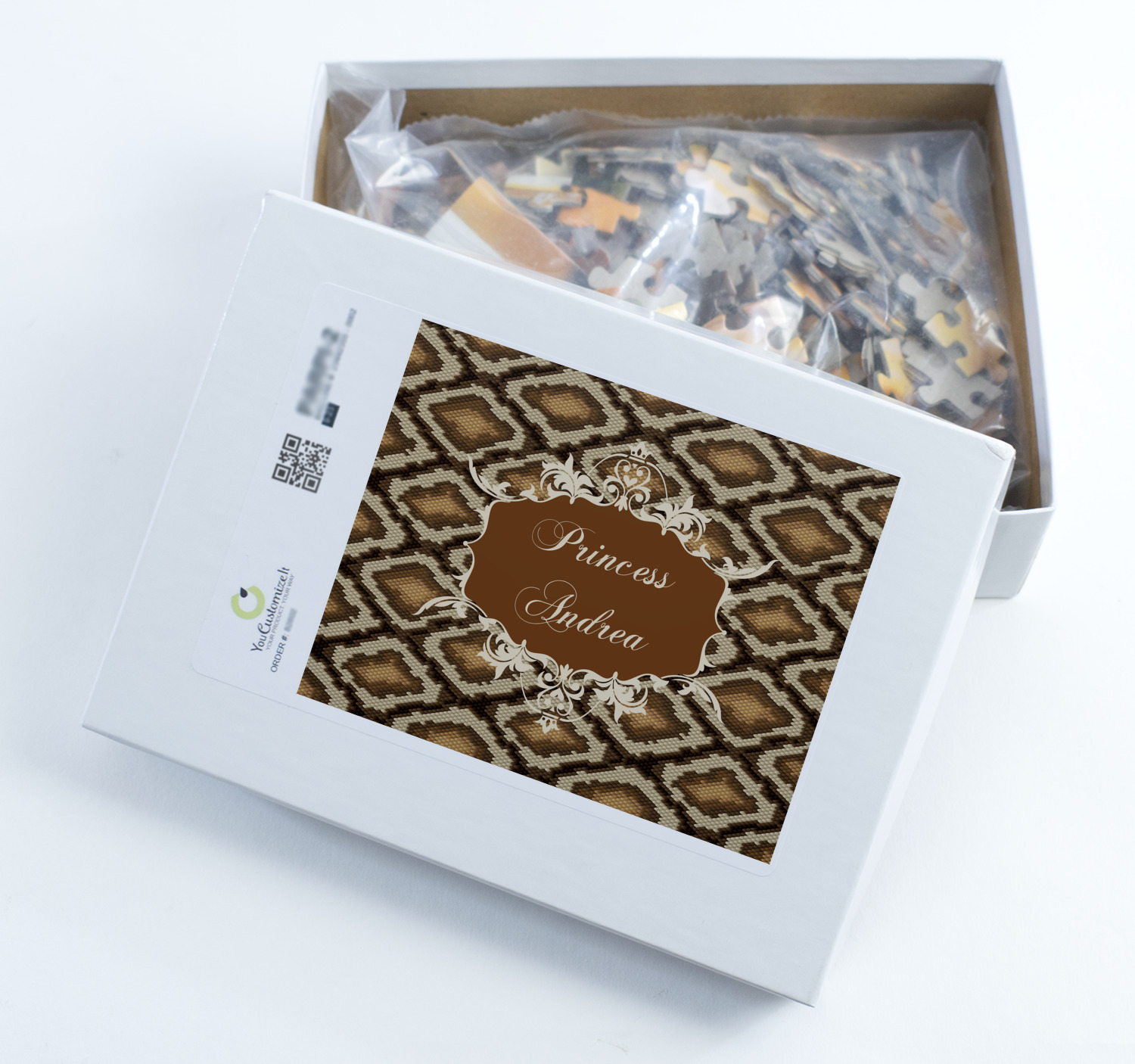 We print our puzzles on thick white chipboard in vibrant colors, then laminate the chipboard and die cut your puzzle. Your jigsaw puzzle is shipped to you in a box with the image of the puzzle on the box.