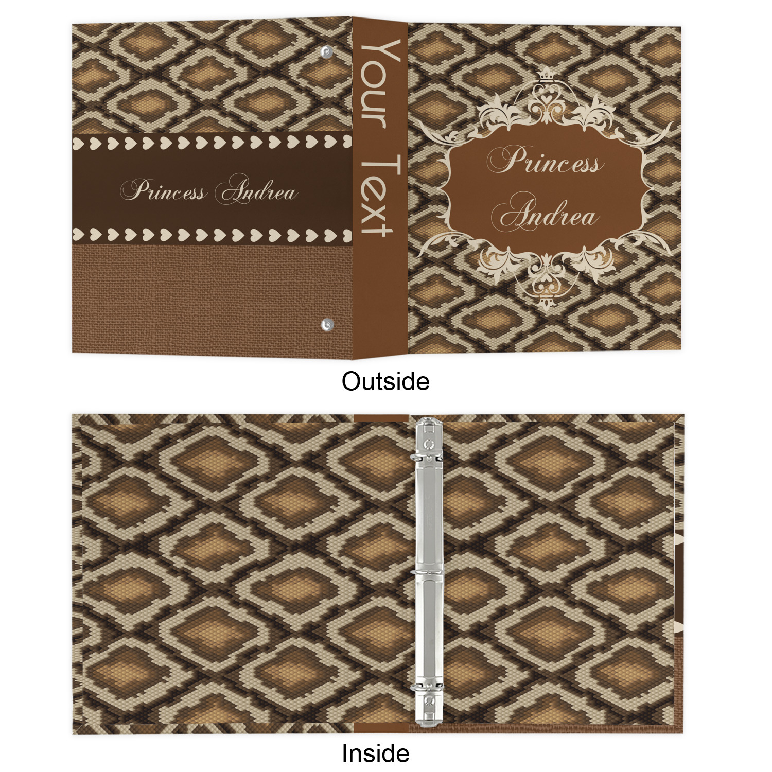 Made from a sturdy cardboard base with a full high quality canvas textured vinyl wrap with the design of your choice. Unlike our standard 3-ring binder with the full wrap design your artwork wraps from the front and back and into the inside of the binder.