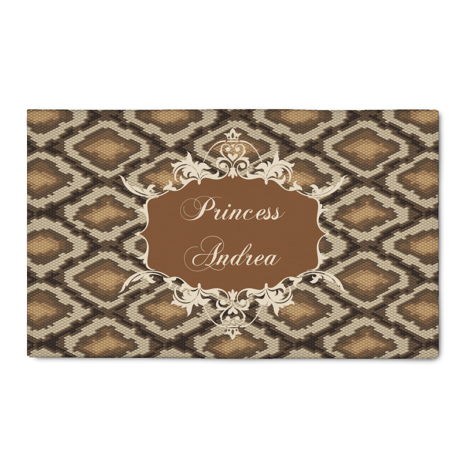 Snake skin print is currently trending and so we created this incredibly beautiful design with a snake skin background in classic browns and beige. The gorgeous label is one of the labels in our floral frames collection. It looks like a crown and thus we chose the personalization to include "princess".