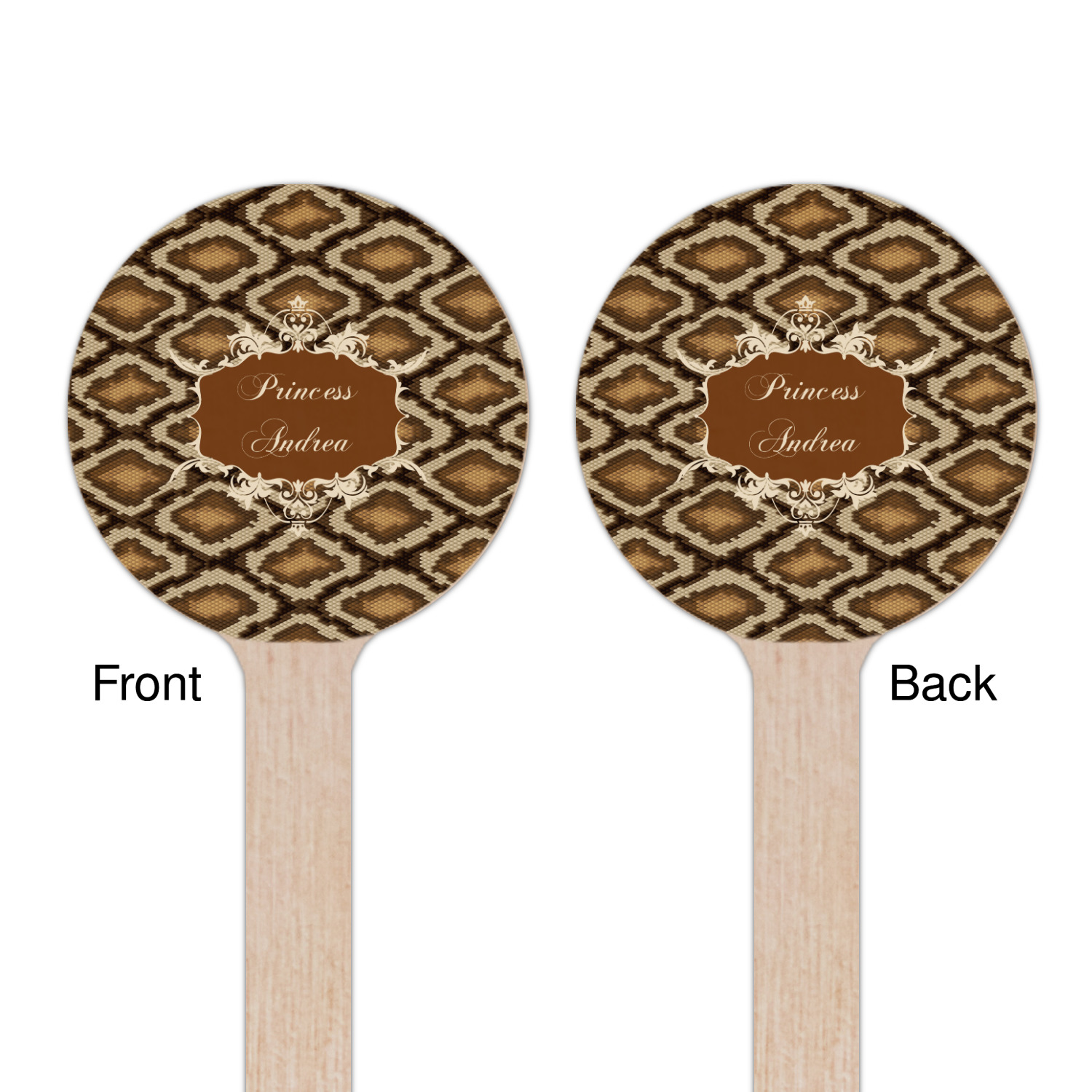 Snake skin print is currently trending and so we created this incredibly beautiful design with a snake skin background in classic browns and beige. The gorgeous label is one of the labels in our floral frames collection. It looks like a crown and thus we chose the personalization to include "princess".