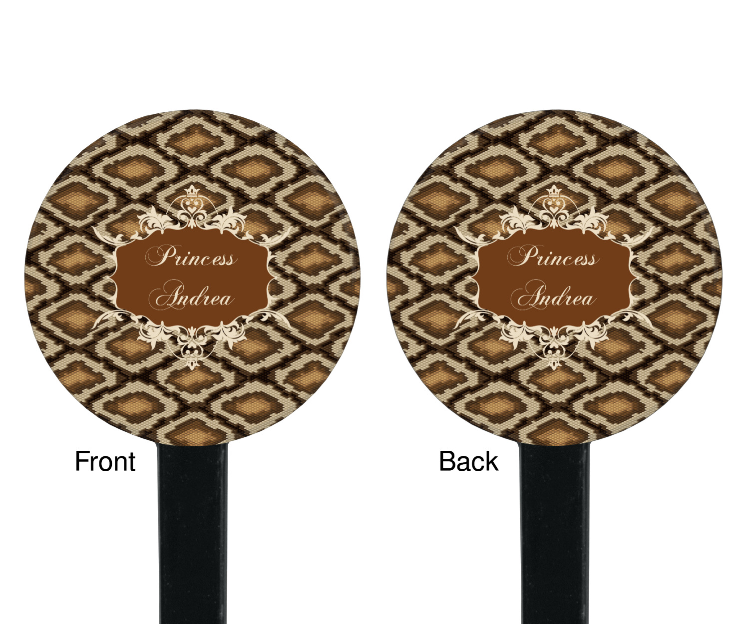 Snake skin print is currently trending and so we created this incredibly beautiful design with a snake skin background in classic browns and beige. The gorgeous label is one of the labels in our floral frames collection. It looks like a crown and thus we chose the personalization to include "princess".