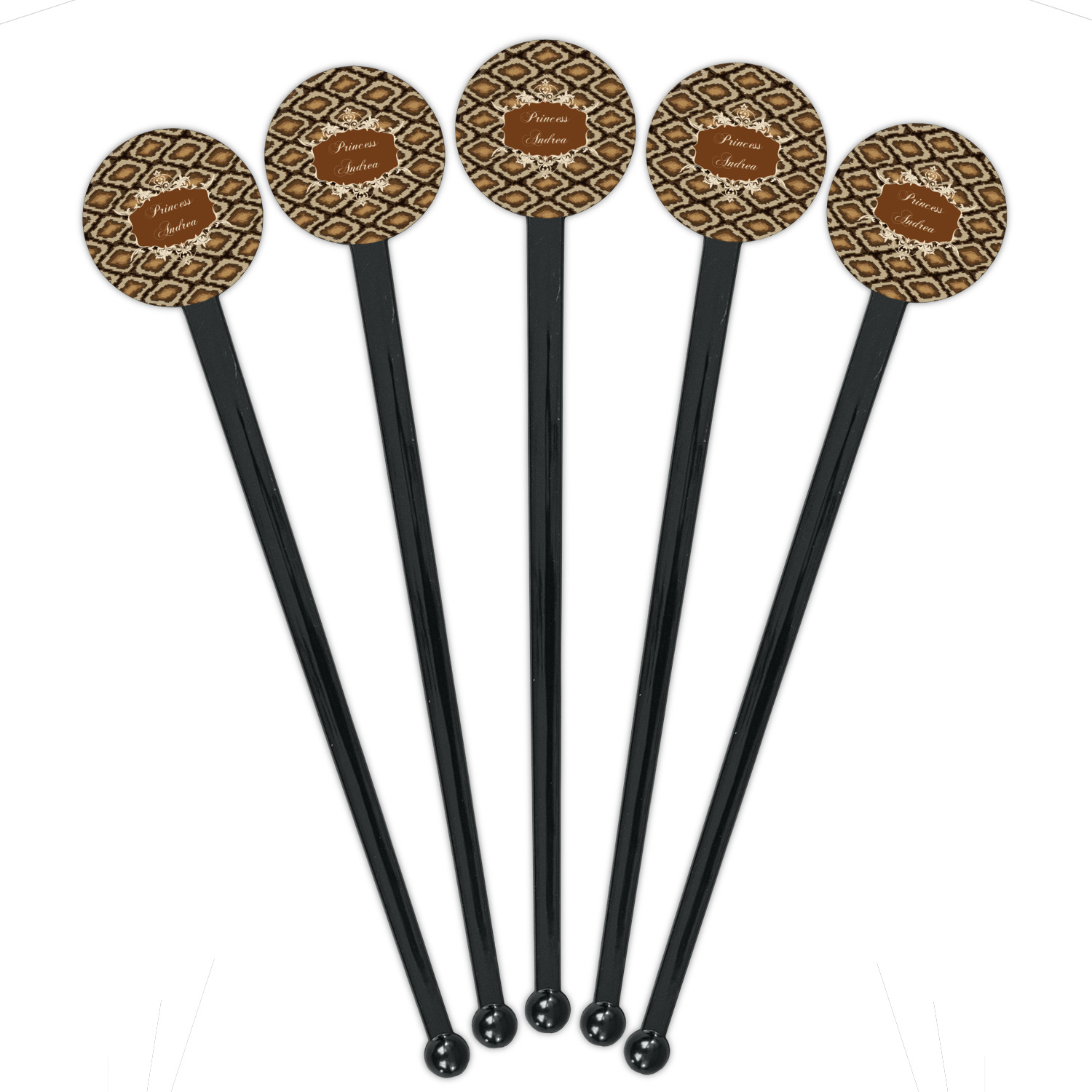 Snake skin print is currently trending and so we created this incredibly beautiful design with a snake skin background in classic browns and beige. The gorgeous label is one of the labels in our floral frames collection. It looks like a crown and thus we chose the personalization to include "princess".