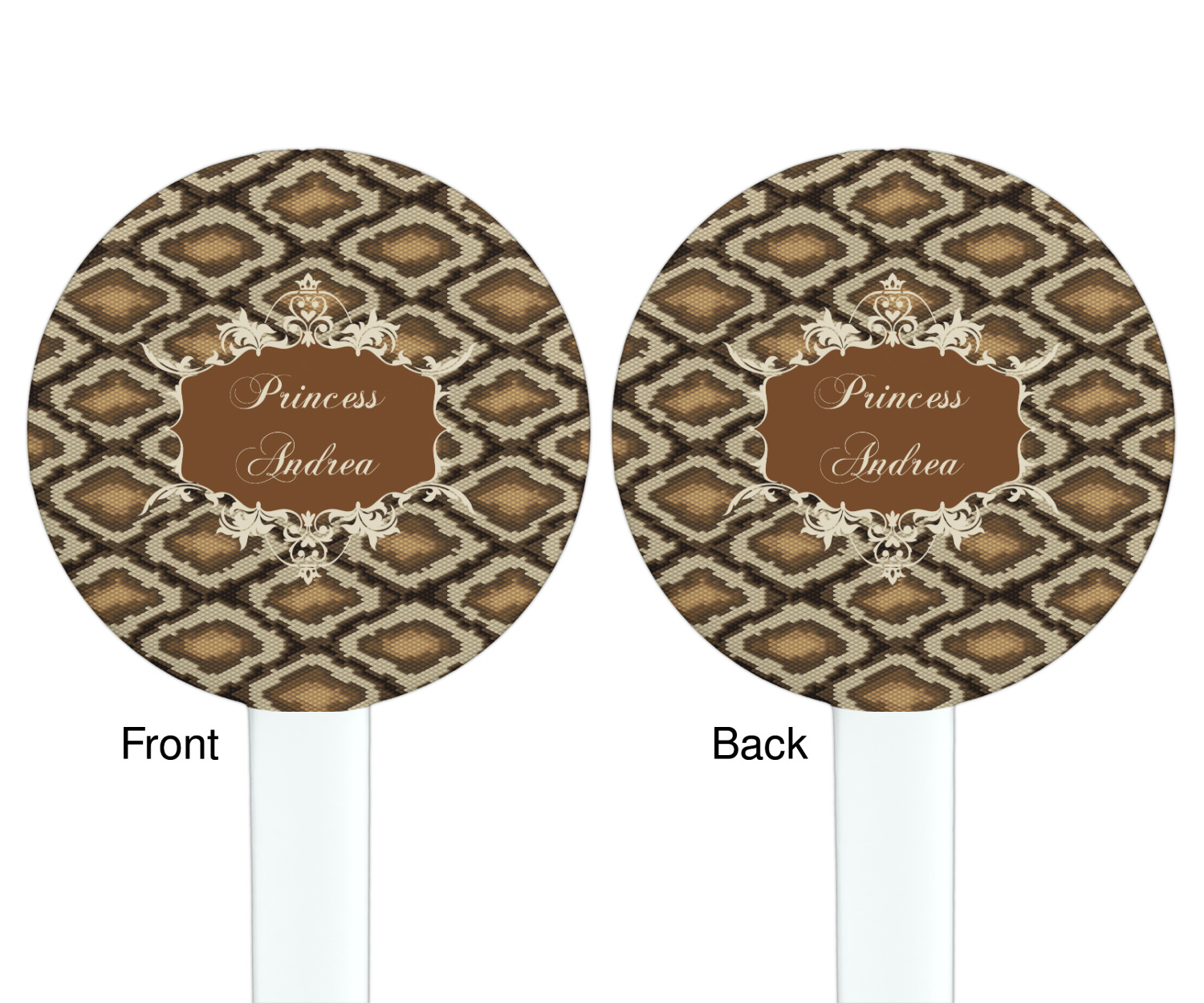 Snake skin print is currently trending and so we created this incredibly beautiful design with a snake skin background in classic browns and beige. The gorgeous label is one of the labels in our floral frames collection. It looks like a crown and thus we chose the personalization to include "princess".