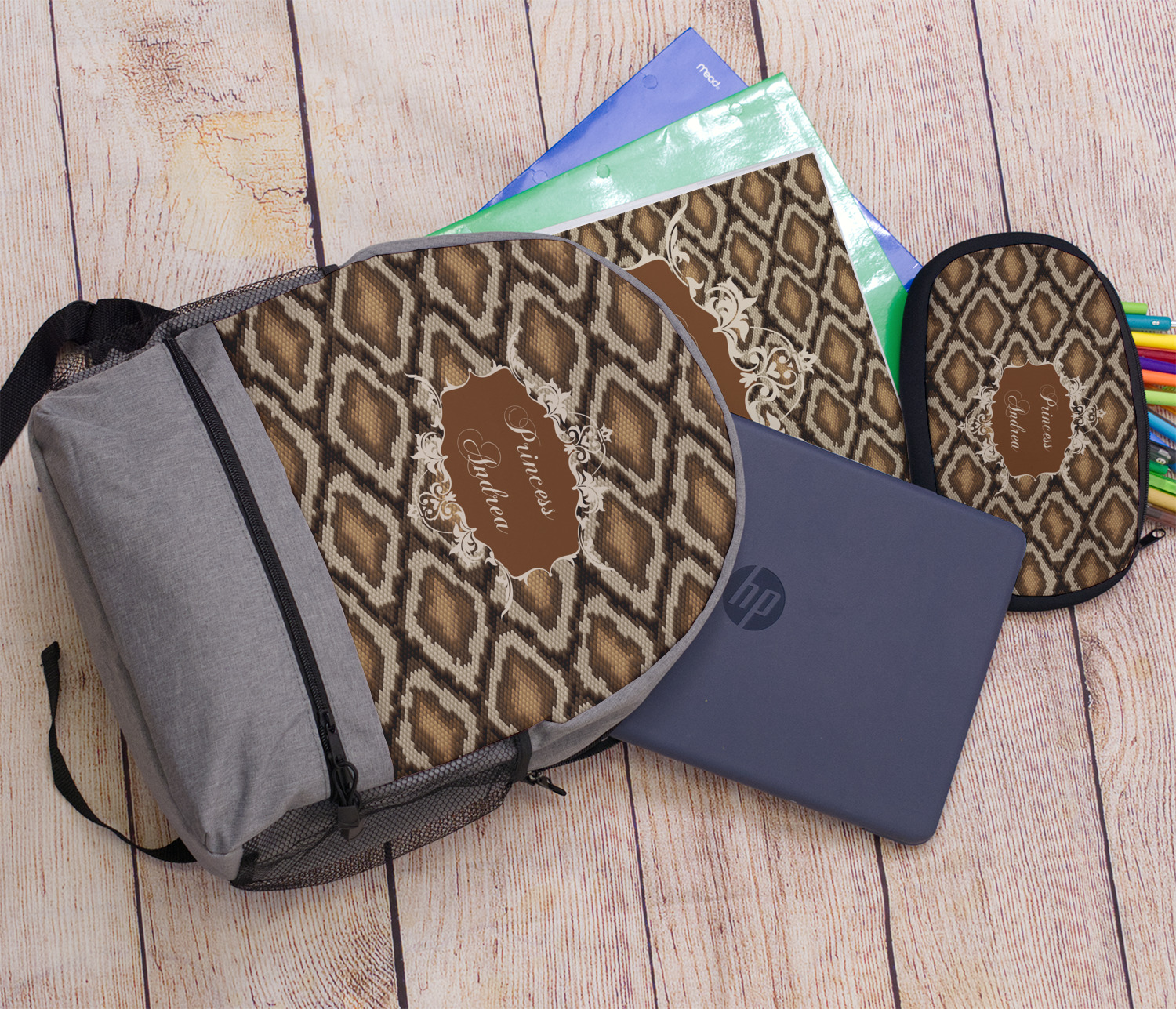 Snake skin print is currently trending and so we created this incredibly beautiful design with a snake skin background in classic browns and beige. The gorgeous label is one of the labels in our floral frames collection. It looks like a crown and thus we chose the personalization to include "princess".