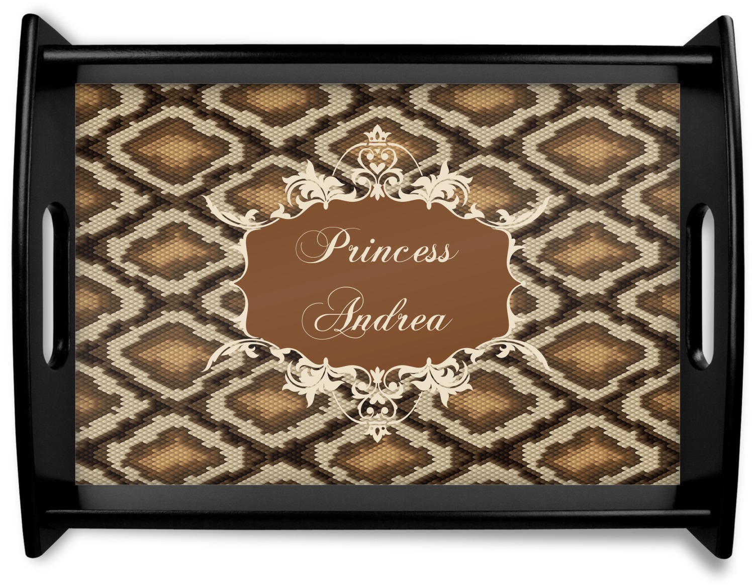 Snake skin print is currently trending and so we created this incredibly beautiful design with a snake skin background in classic browns and beige. The gorgeous label is one of the labels in our floral frames collection. It looks like a crown and thus we chose the personalization to include "princess".