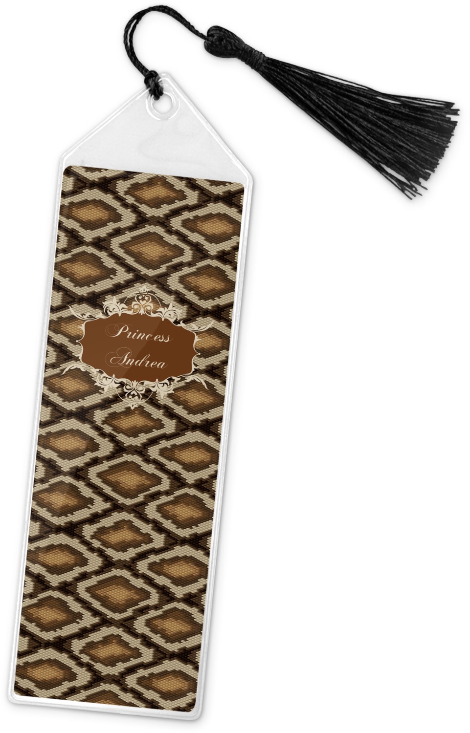Your personalized bookmark is made of a sturdy, clear vinyl, and is approximately 7.5" x 2.25". We display your personalization on vinyl inserts that are placed on both sides. Accompanying each book marker is a black, fringe tassel that attaches to the reinforced, triangular header.