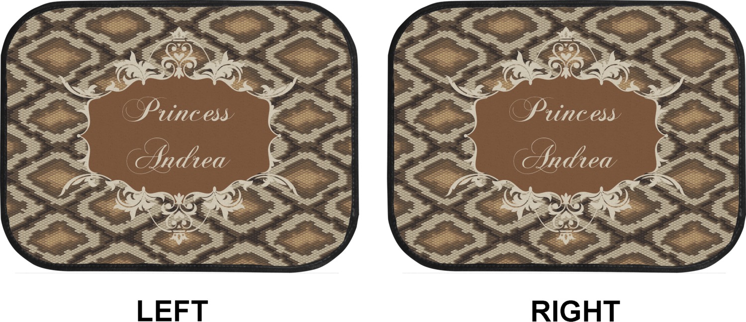 We craft our auto floor mats mats from polyester, apply a black finish to the edges, and lined at the bottom to prevent slippage. These mats protect your floors from grass, mud, and any accidental spills. We display your personalized design on the front face of each mat. The sizes of these car floor liners are standardized to provide a versatile fit for all vehicles. The front rows car mats measure at 17 by 26.5 inches, while the back rows measure at 17 by 13 inches. We sell three packages of car floor mats. You can purchase a pair of front row car mats, a pair of back row car mats, or a set of front row and back row car mats. To make an informed purchase, we recommend measuring the surface area of your car floors.