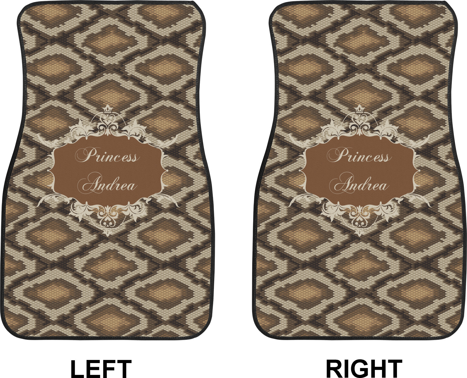 We craft our auto floor mats mats from polyester, apply a black finish to the edges, and lined at the bottom to prevent slippage. These mats protect your floors from grass, mud, and any accidental spills. We display your personalized design on the front face of each mat. The sizes of these car floor liners are standardized to provide a versatile fit for all vehicles. The front rows car mats measure at 17 by 26.5 inches, while the back rows measure at 17 by 13 inches. We sell three packages of car floor mats. You can purchase a pair of front row car mats, a pair of back row car mats, or a set of front row and back row car mats. To make an informed purchase, we recommend measuring the surface area of your car floors.