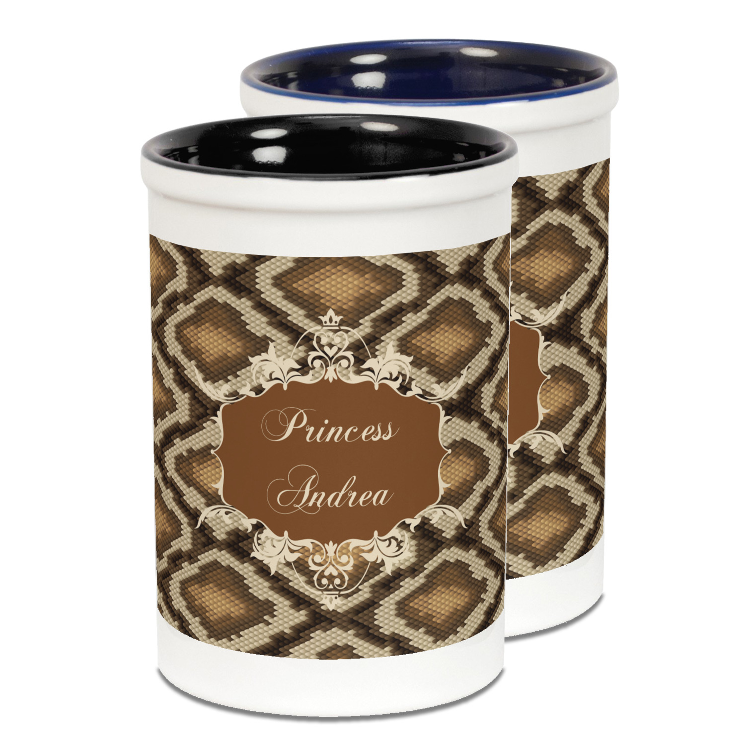Snake skin print is currently trending and so we created this incredibly beautiful design with a snake skin background in classic browns and beige. The gorgeous label is one of the labels in our floral frames collection. It looks like a crown and thus we chose the personalization to include "princess".