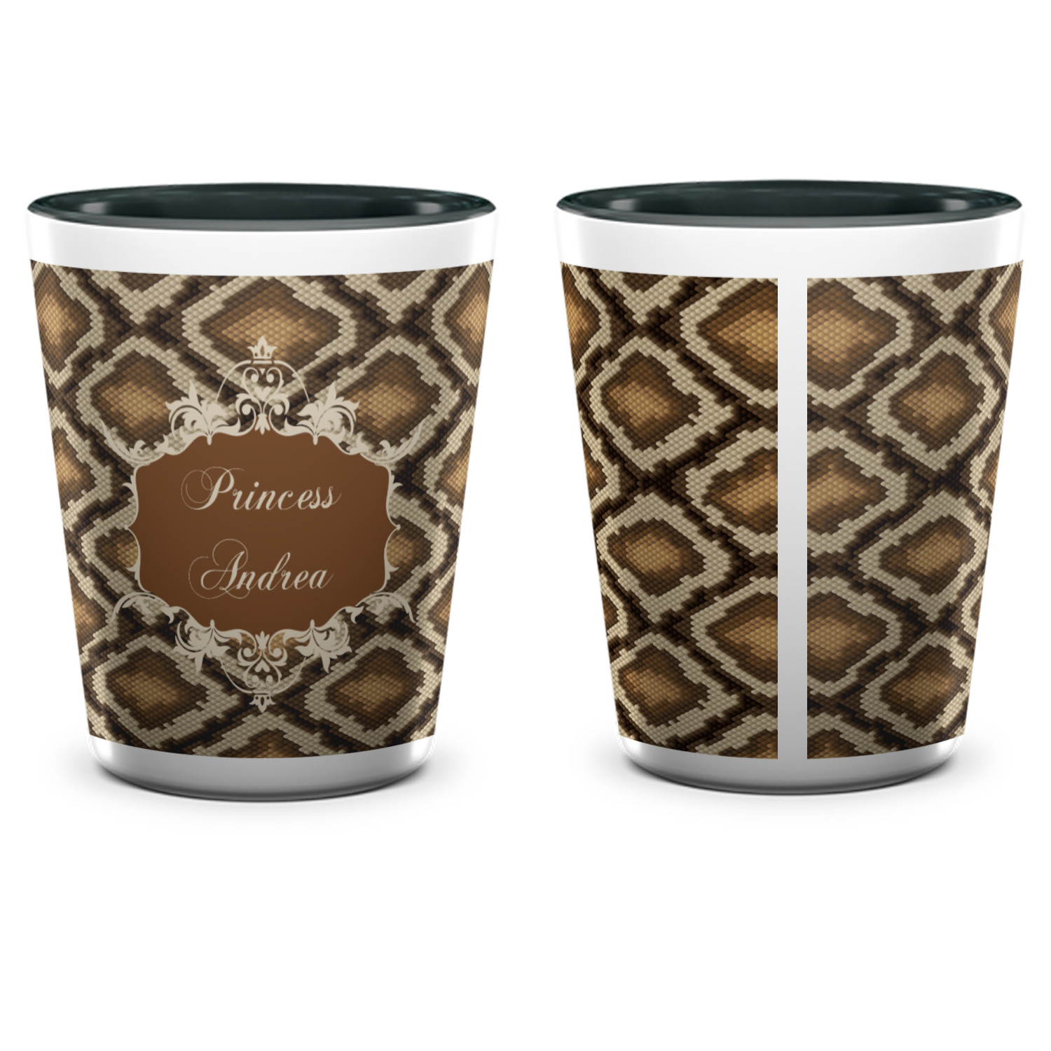 Snake skin print is currently trending and so we created this incredibly beautiful design with a snake skin background in classic browns and beige. The gorgeous label is one of the labels in our floral frames collection. It looks like a crown and thus we chose the personalization to include "princess".