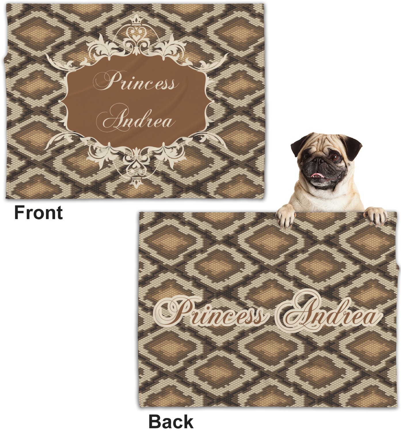 These dog blankets are crafted from a gentle, soft-to-the-touch, minky material. We print your customizations, either matching or differing, on both the top and underside of the blanket. These personalized dog blankets are available in two sizes: regular and large. Our regular size, at 40" x 30", accommodates small and some medium size dogs. At 60" x 50", our large dog blanket is a better fit for bigger breeds. Though specialized for dogs, these blankets still make a thoughtful gift for your favorite feline, or any other pet in mind!