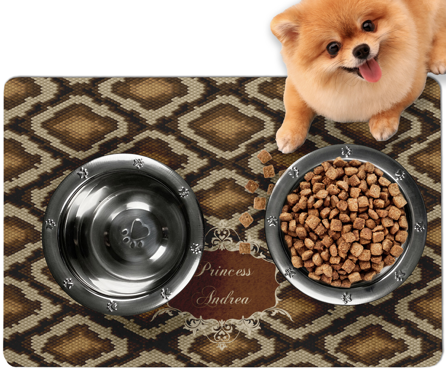 This dog bowl mat, fabricated from polyester, proudly displays your customized design on its top, while its bottom includes a non-slip rubber. This feature allows it to remain firmly in place, even when your dog spills his/her water. With 3 sizes available (18" x 12", 24" x 18", 30" x 24"), the pet food mat has ample space for both a food and water bowl for any sized dogs. Though specified for dogs' use, these mats are also a splendid option for cats.