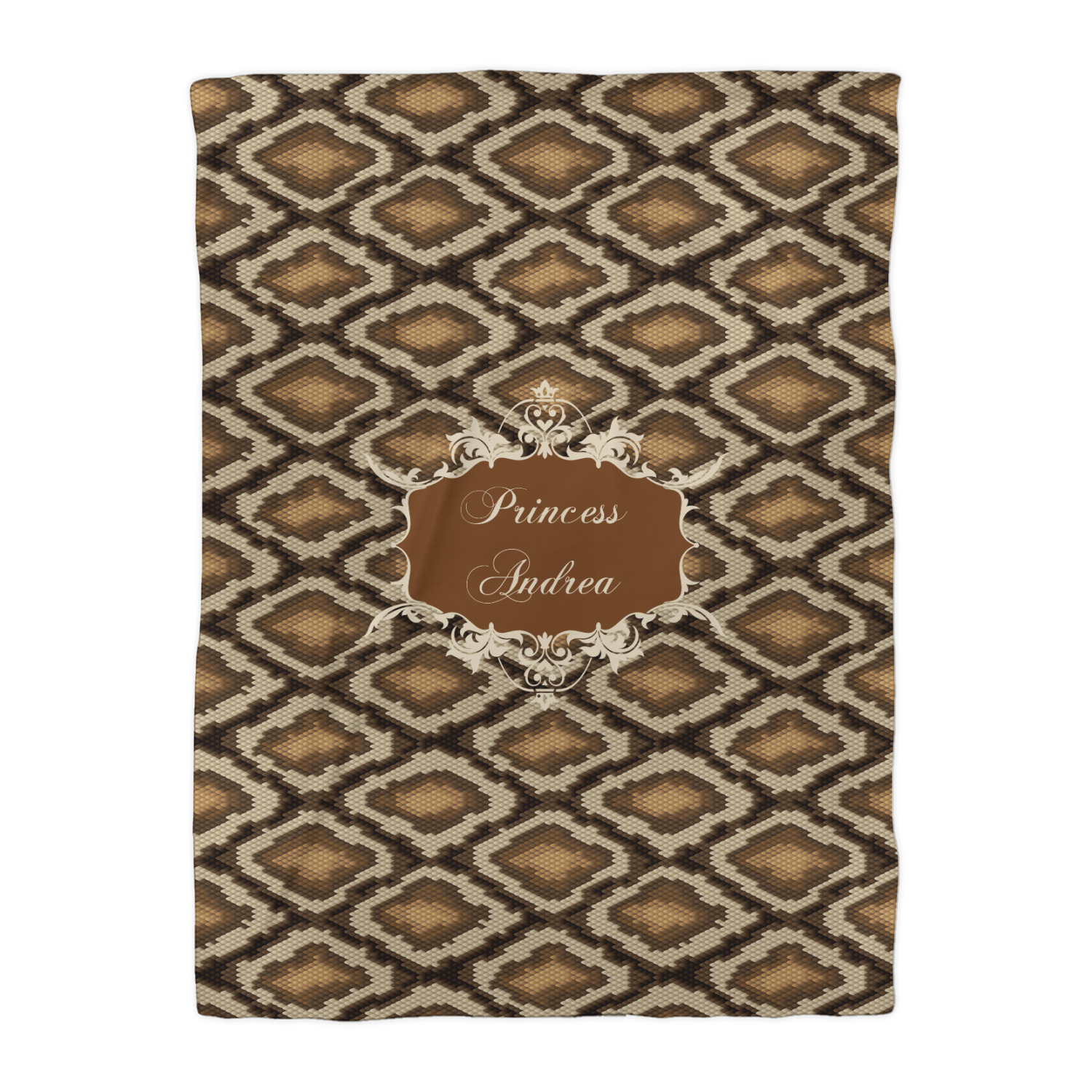 Snake skin print is currently trending and so we created this incredibly beautiful design with a snake skin background in classic browns and beige. The gorgeous label is one of the labels in our floral frames collection. It looks like a crown and thus we chose the personalization to include "princess".