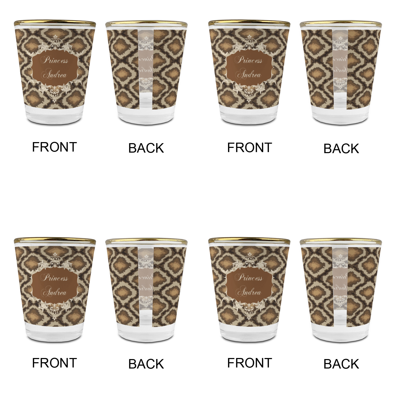 Snake skin print is currently trending and so we created this incredibly beautiful design with a snake skin background in classic browns and beige. The gorgeous label is one of the labels in our floral frames collection. It looks like a crown and thus we chose the personalization to include "princess".