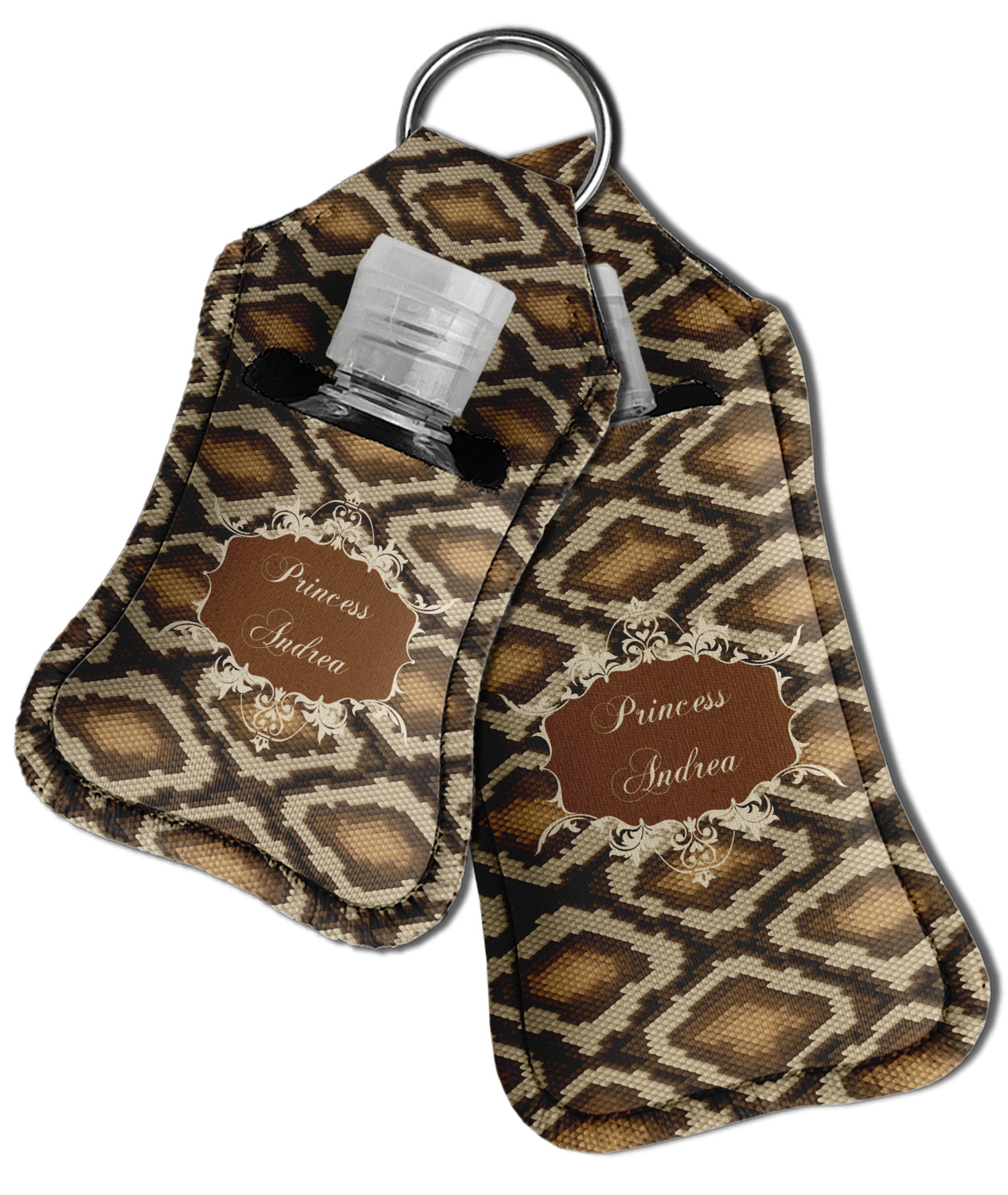 Each hand sanitizer holder comes with its own empty travel-sized, refillable hand sanitizer sure to fit snug in your customized sanitizer case! Our hand sanitizer cases are a durable, yet soft neoprene material sure to last any daily activities or travel agenda. Customize and personalize a hand sanitizer bottle holder with one of our two sizes - small (4.25" x 2.25") or large (5.5" x 2.5"). Each travel sanitizer holder comes with a keyring for attachment on bags, keys, or more!