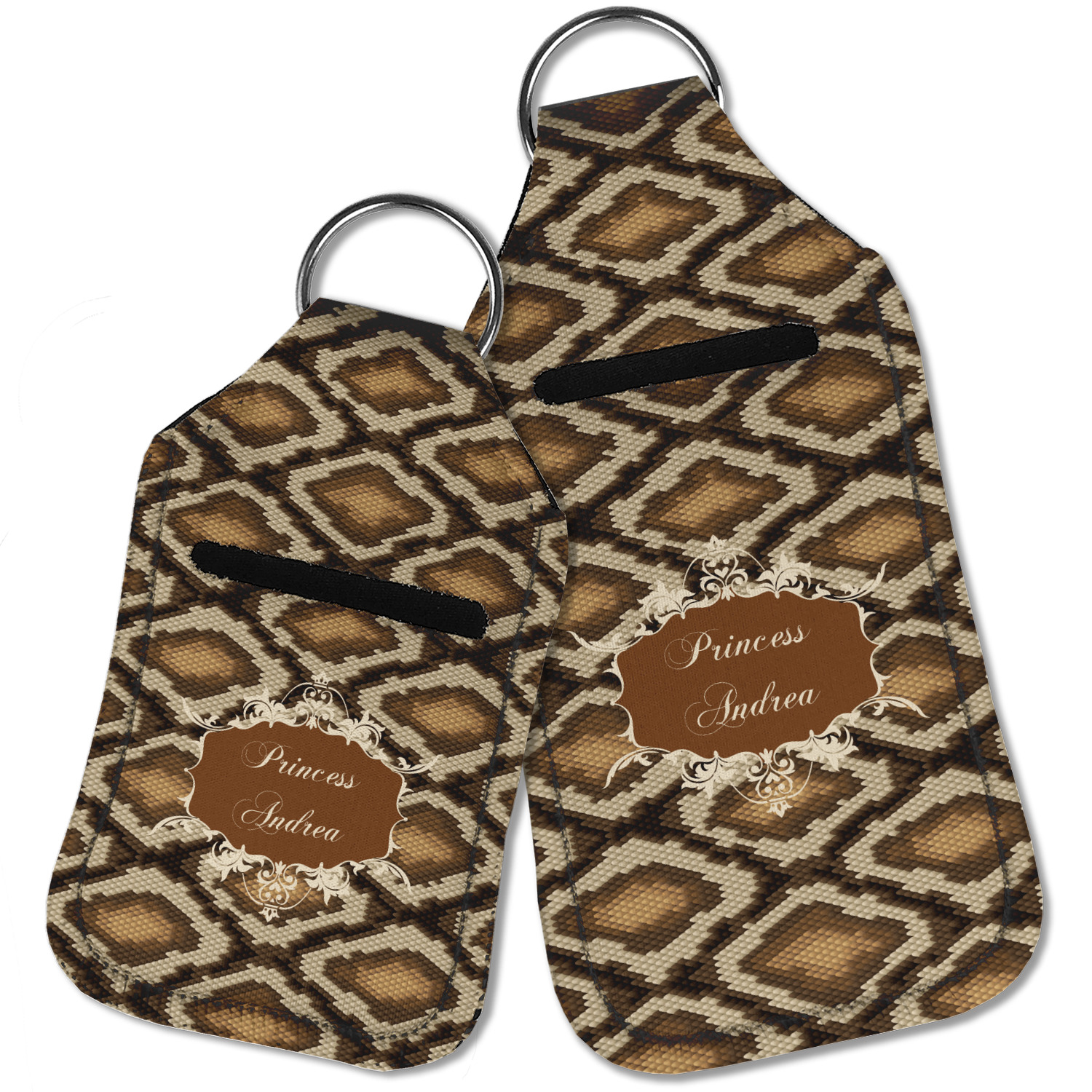 Snake skin print is currently trending and so we created this incredibly beautiful design with a snake skin background in classic browns and beige. The gorgeous label is one of the labels in our floral frames collection. It looks like a crown and thus we chose the personalization to include "princess".