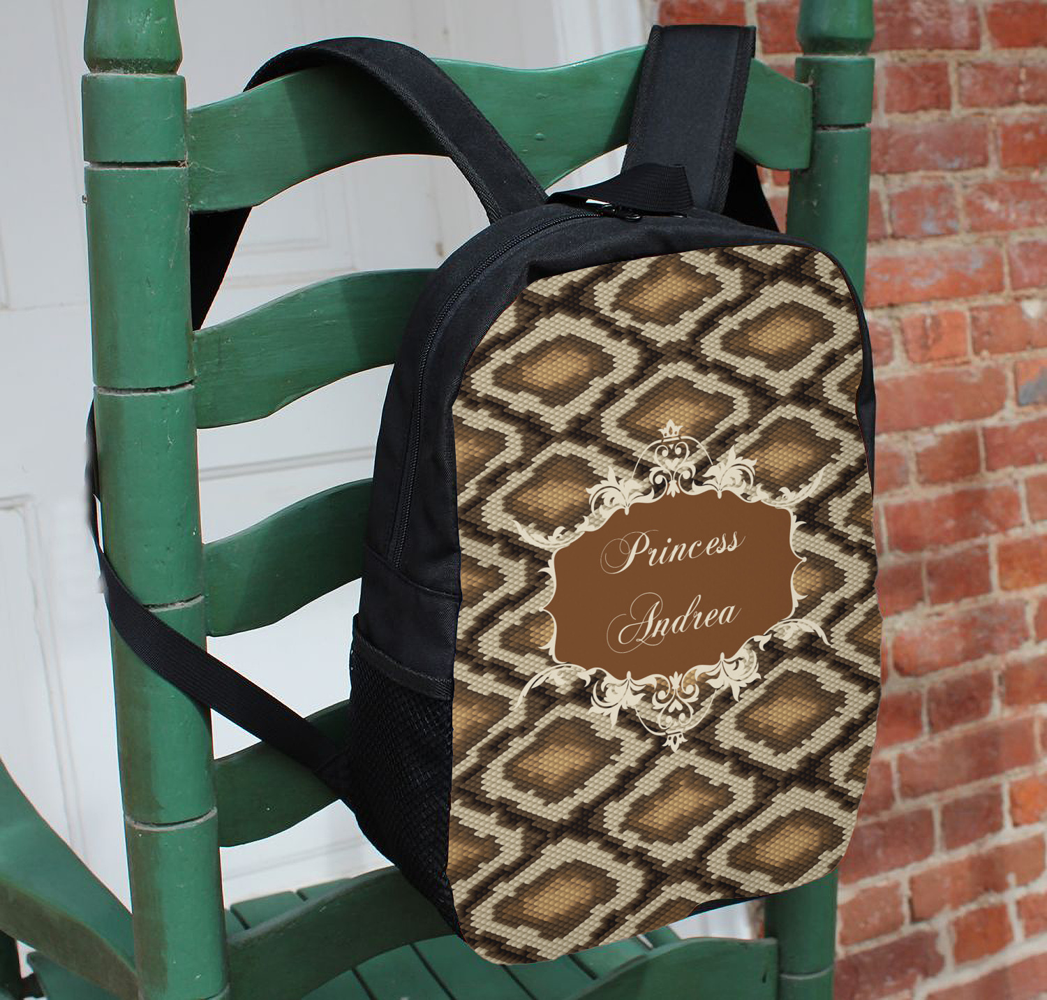 Snake skin print is currently trending and so we created this incredibly beautiful design with a snake skin background in classic browns and beige. The gorgeous label is one of the labels in our floral frames collection. It looks like a crown and thus we chose the personalization to include "princess".