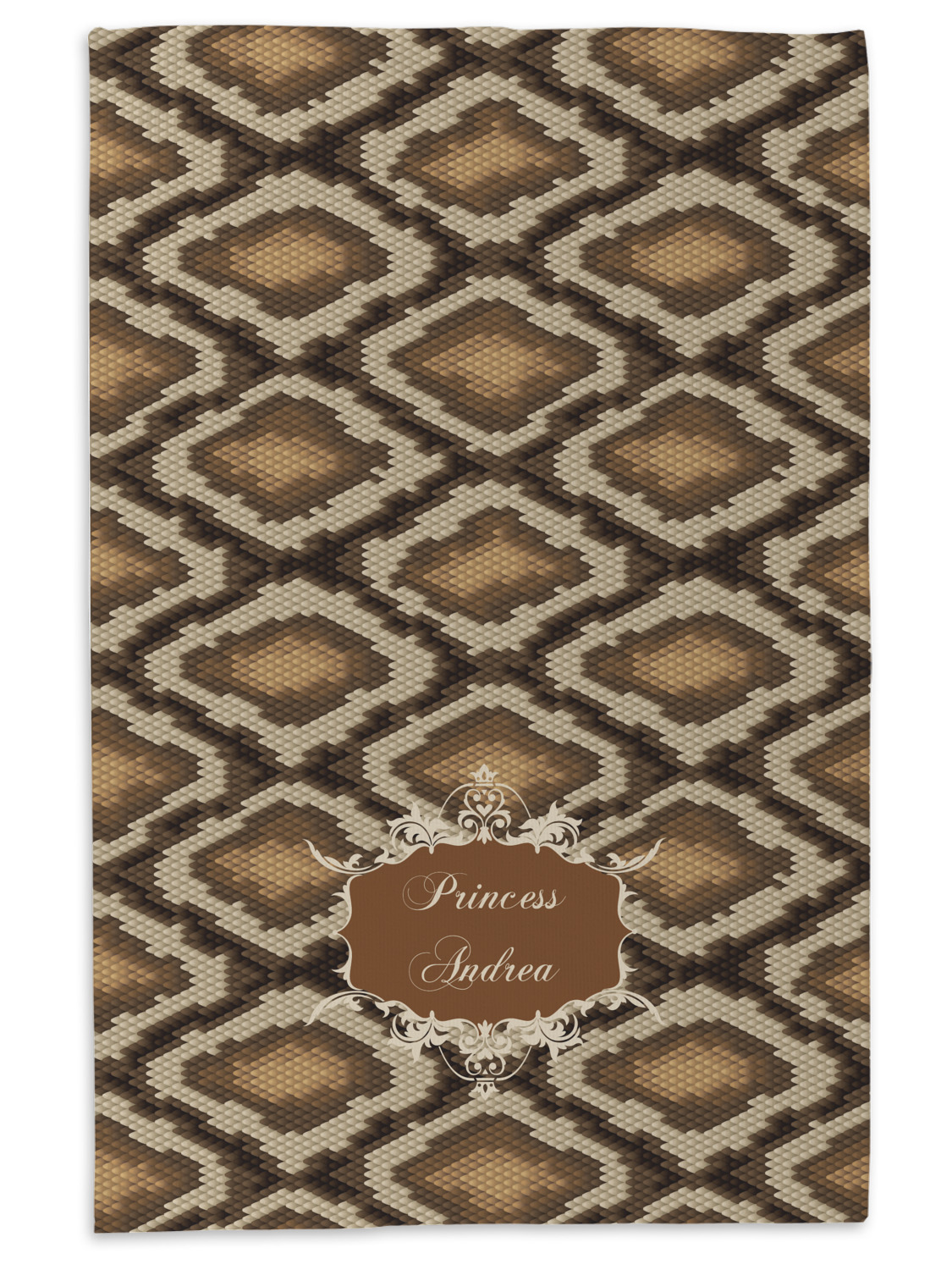 Snake skin print is currently trending and so we created this incredibly beautiful design with a snake skin background in classic browns and beige. The gorgeous label is one of the labels in our floral frames collection. It looks like a crown and thus we chose the personalization to include "princess".