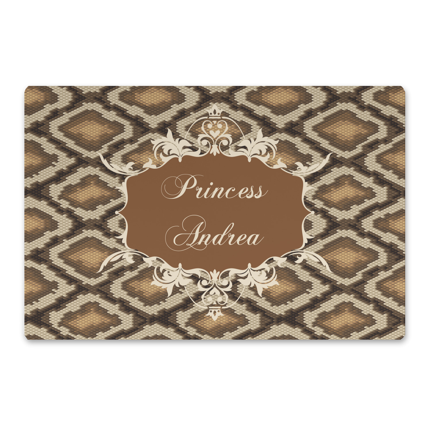 Snake skin print is currently trending and so we created this incredibly beautiful design with a snake skin background in classic browns and beige. The gorgeous label is one of the labels in our floral frames collection. It looks like a crown and thus we chose the personalization to include "princess".