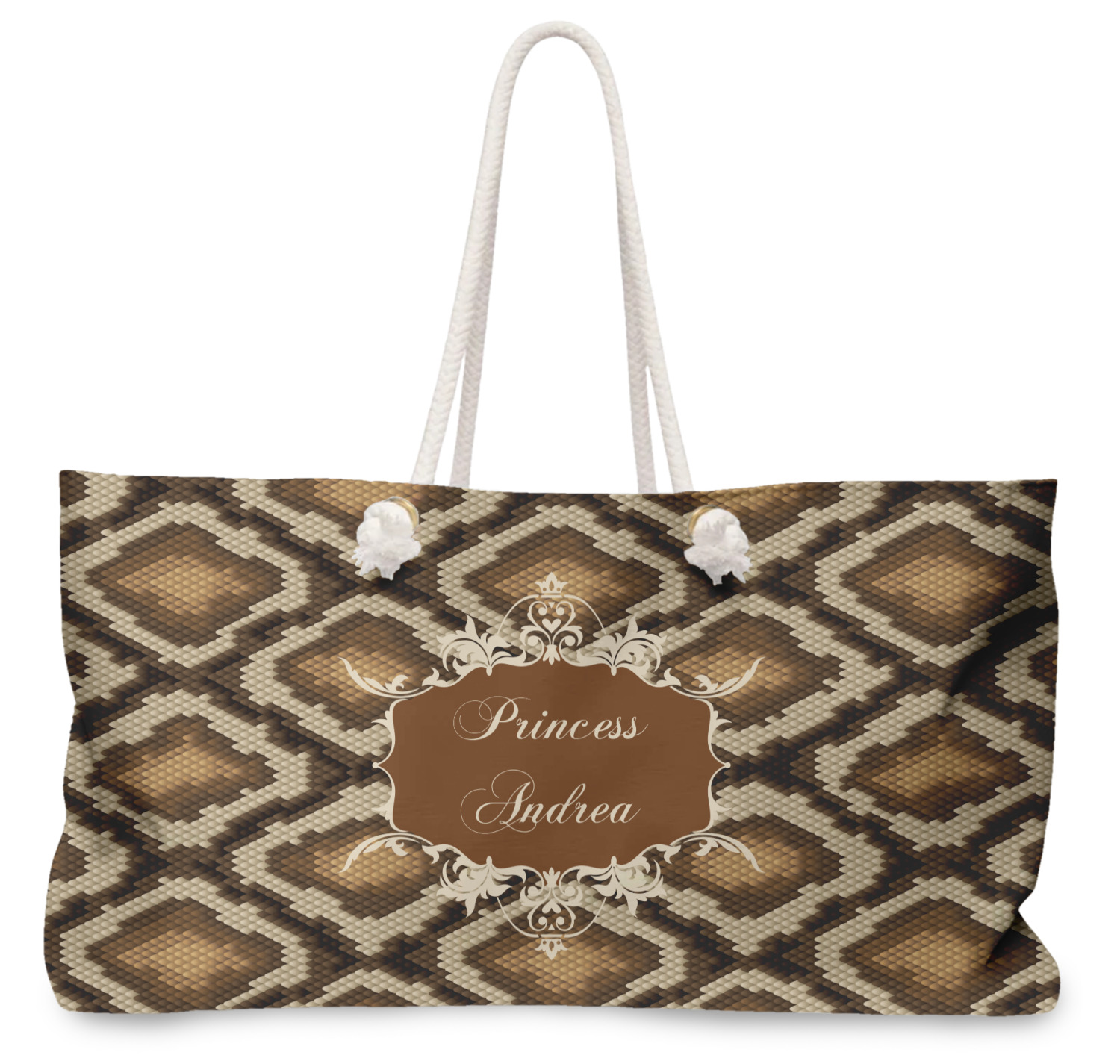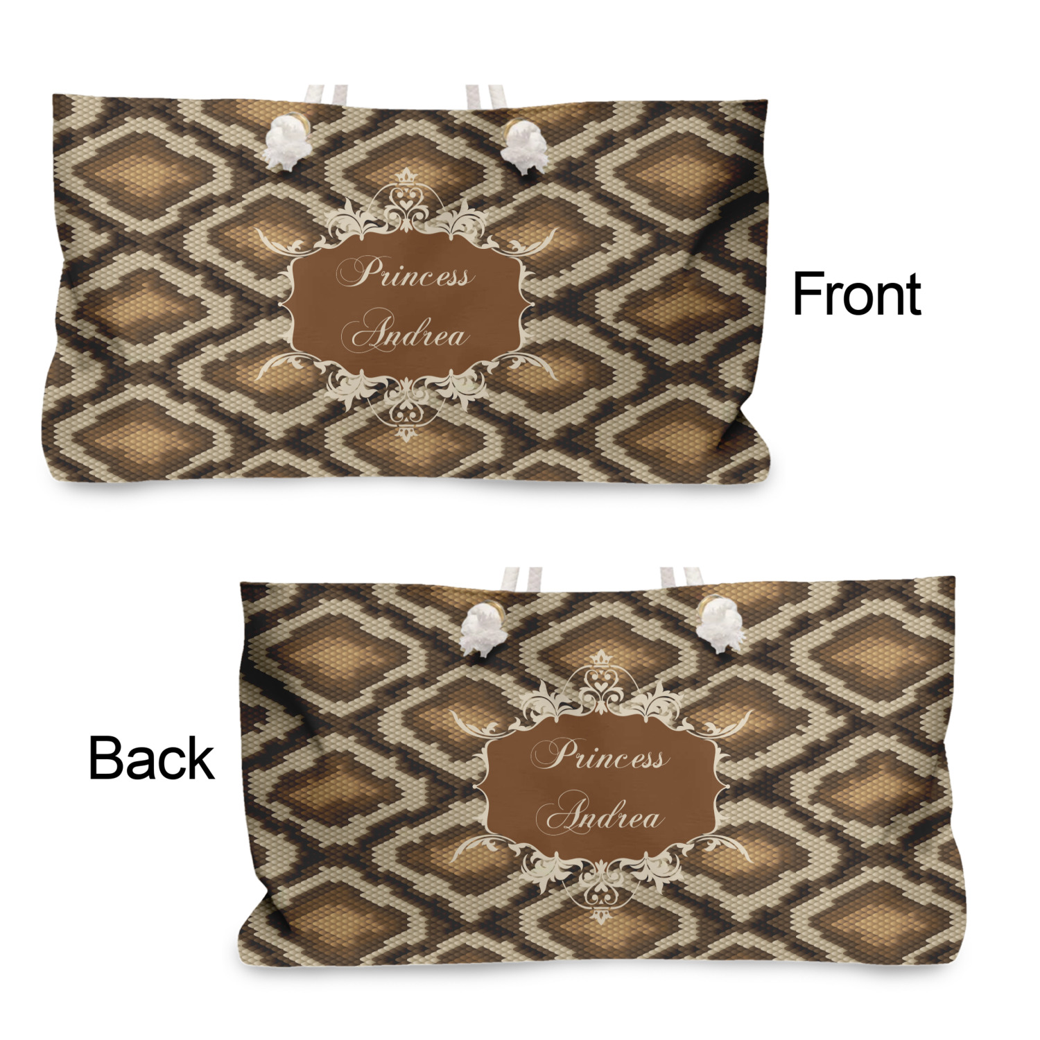 Snake skin print is currently trending and so we created this incredibly beautiful design with a snake skin background in classic browns and beige. The gorgeous label is one of the labels in our floral frames collection. It looks like a crown and thus we chose the personalization to include "princess".
