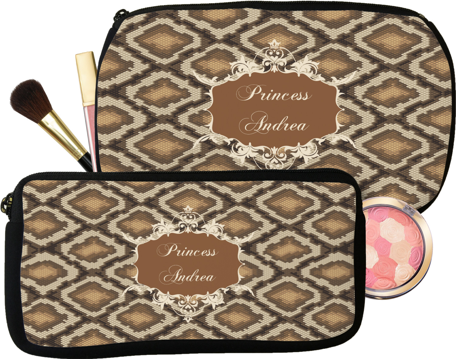 Our personalized makeup bags are available in many different designs, patterns and colors - so you are sure to find one that will love. They are made of neoprene (same material as wet-suits) and thus are water resistant, so spillages in your makeup bag will not end up all over you purse. They are customized on one side and are black on the other side and the zipper is black as well.