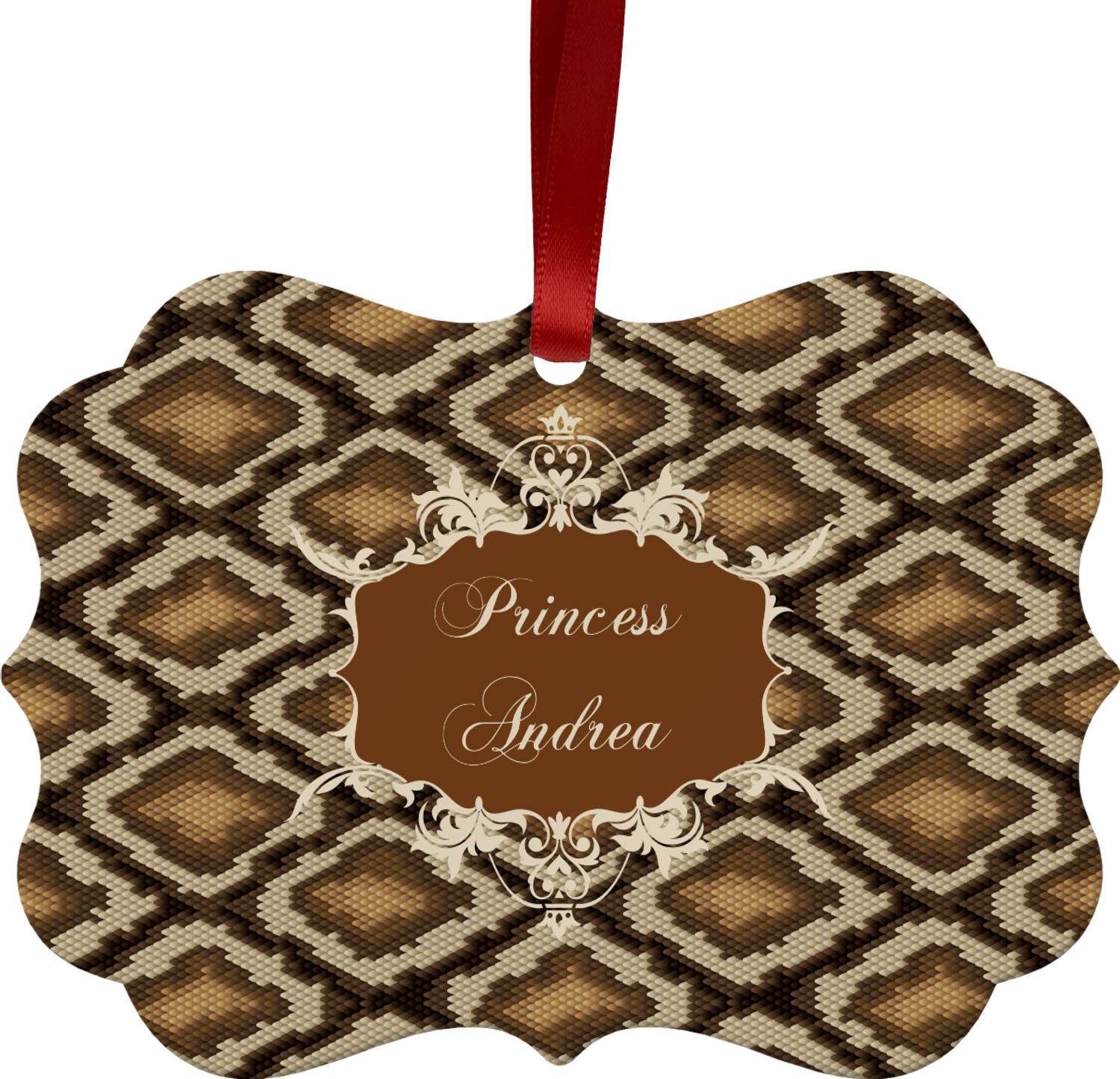 Snake skin print is currently trending and so we created this incredibly beautiful design with a snake skin background in classic browns and beige. The gorgeous label is one of the labels in our floral frames collection. It looks like a crown and thus we chose the personalization to include "princess".