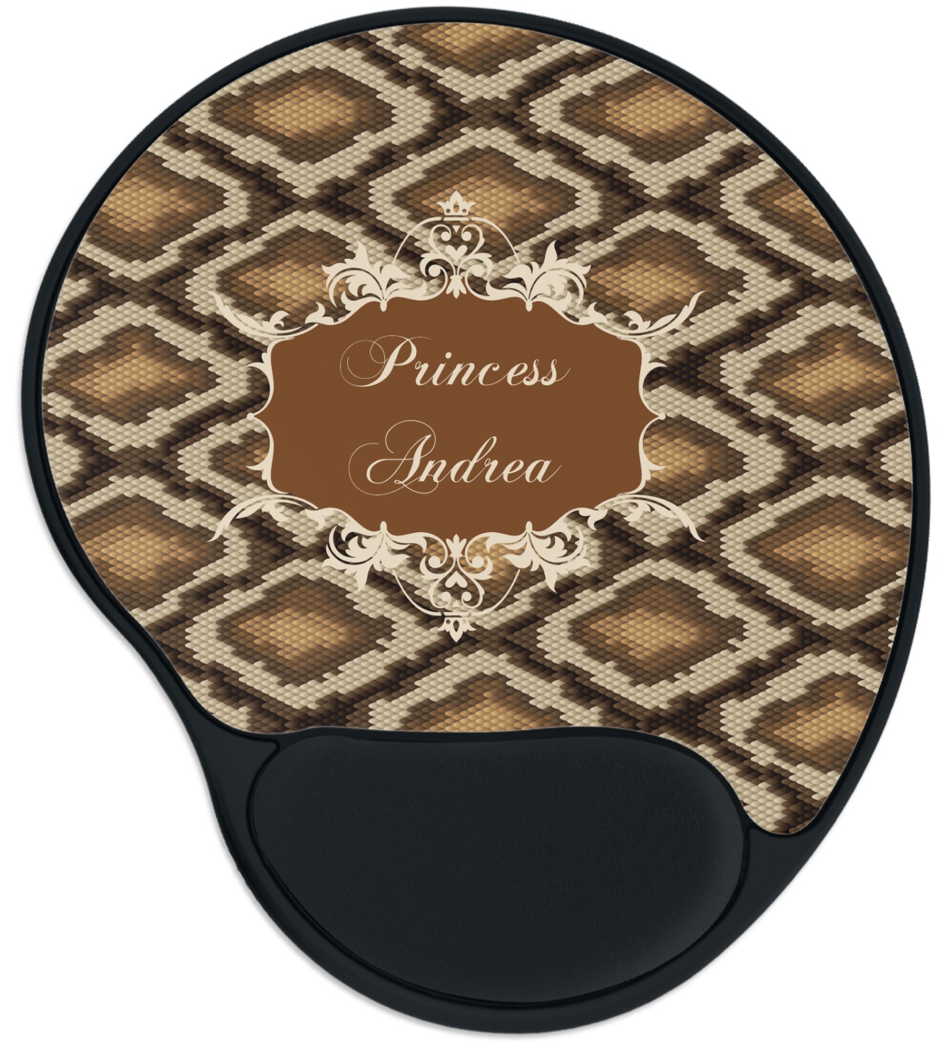 Snake skin print is currently trending and so we created this incredibly beautiful design with a snake skin background in classic browns and beige. The gorgeous label is one of the labels in our floral frames collection. It looks like a crown and thus we chose the personalization to include "princess".
