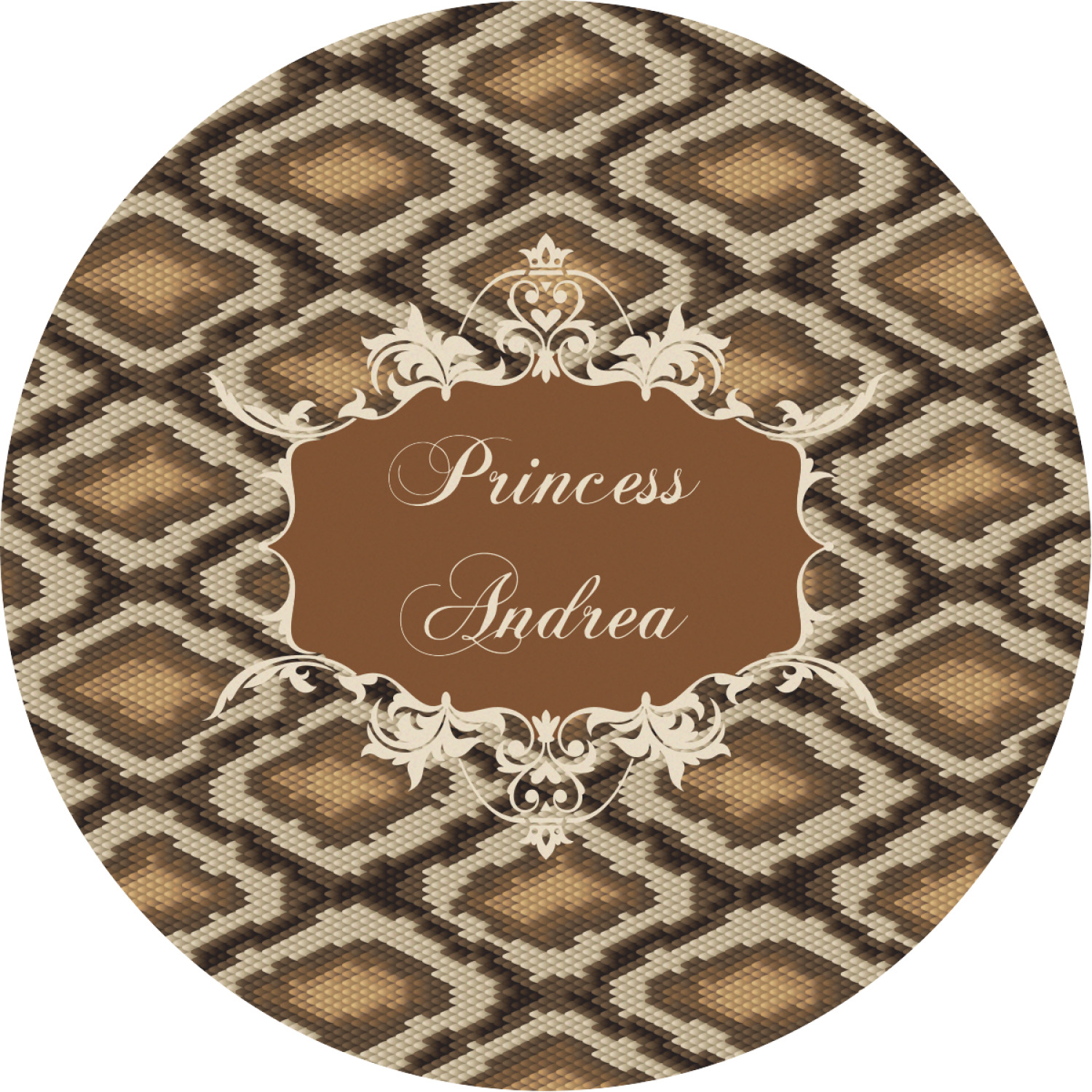 Snake skin print is currently trending and so we created this incredibly beautiful design with a snake skin background in classic browns and beige. The gorgeous label is one of the labels in our floral frames collection. It looks like a crown and thus we chose the personalization to include "princess".