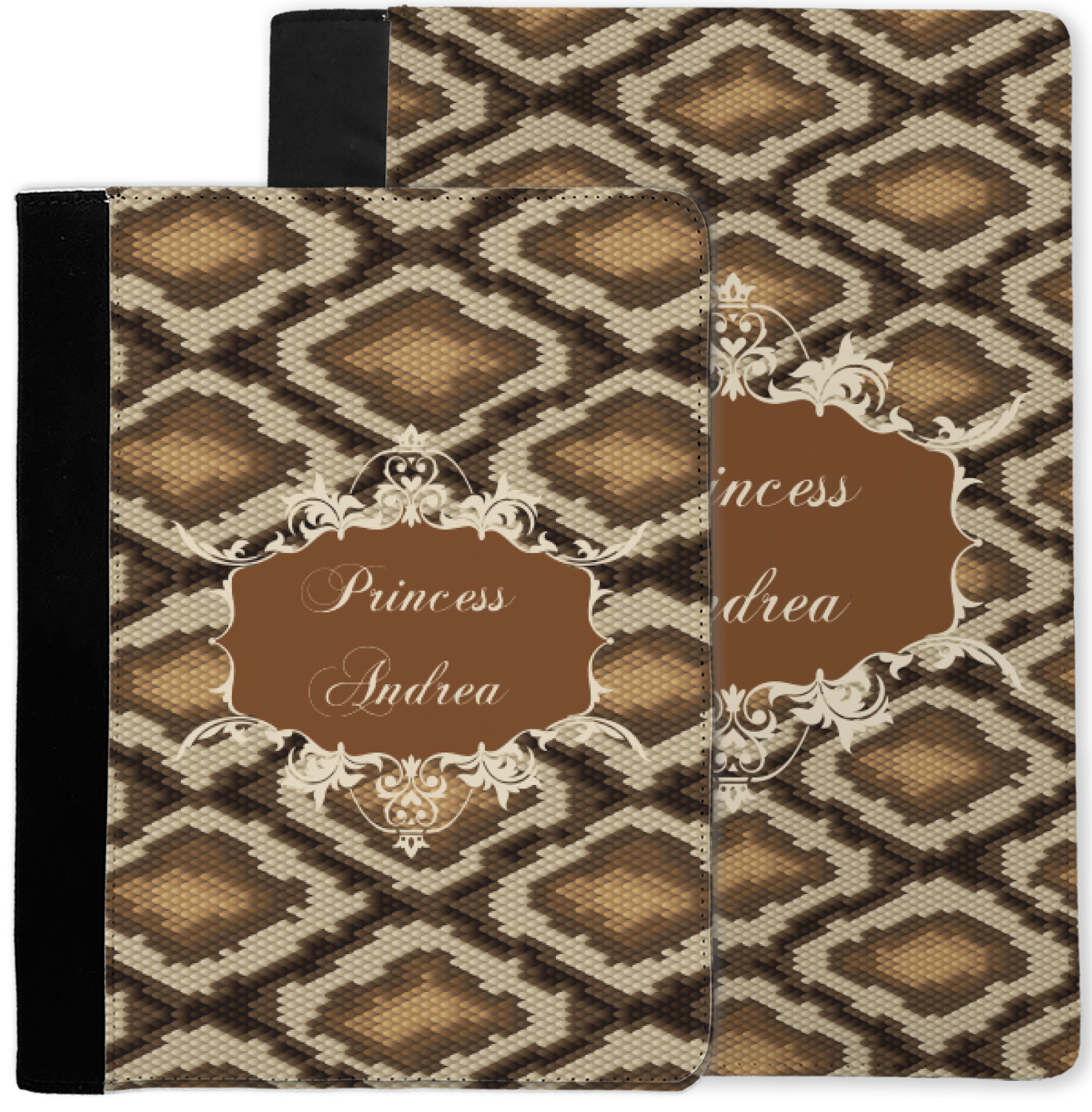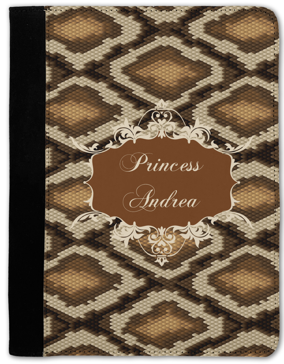 Snake skin print is currently trending and so we created this incredibly beautiful design with a snake skin background in classic browns and beige. The gorgeous label is one of the labels in our floral frames collection. It looks like a crown and thus we chose the personalization to include "princess".