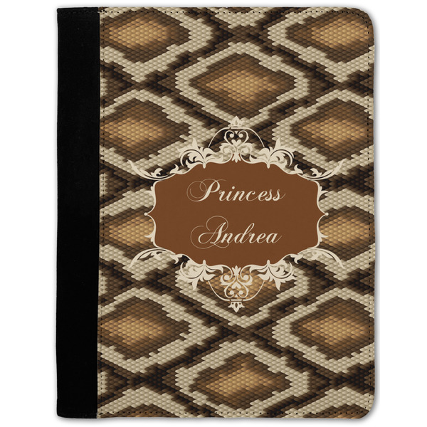These personalized padfolios are made from a black, polyester microfiber and features a standard, 50-page notepad. However, these black padfolios can accommodate a pad with up to 100 pages. This model also features a slot pocket for any loose sheets of paper, small pockets for business cards, and an elastic band to secure a pen. We print your personalization across the front of this notepad portfolio in bright, vibrant color. These padfolios come in 2 sizes, Medium - approximately 10.25" x 8" for 5" x 8" paper and Large - approximately 12.5" x 8.5" for 8.5" x 11" paper.