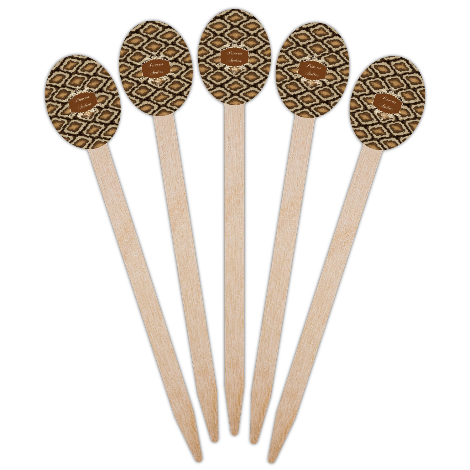 Snake skin print is currently trending and so we created this incredibly beautiful design with a snake skin background in classic browns and beige. The gorgeous label is one of the labels in our floral frames collection. It looks like a crown and thus we chose the personalization to include "princess".