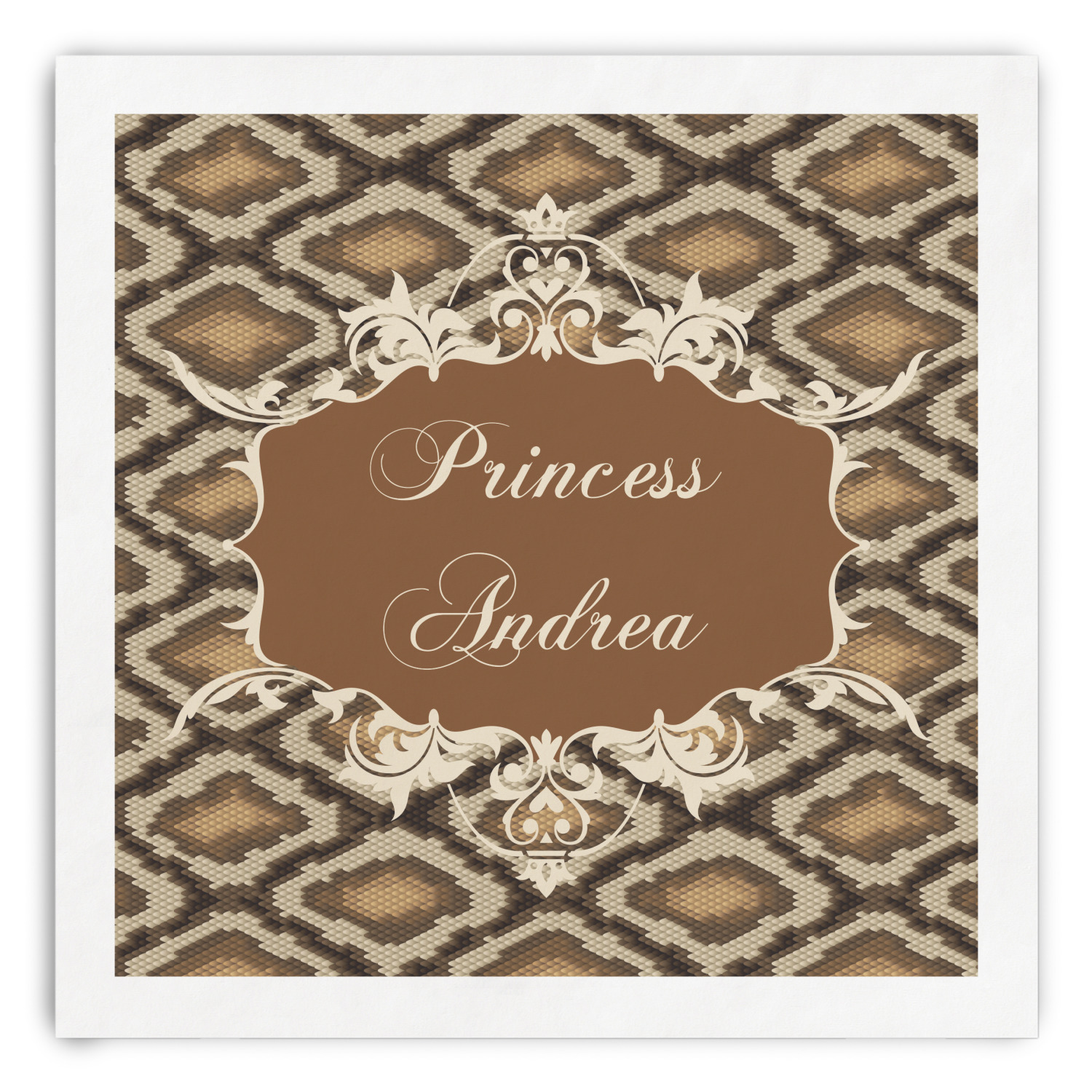 Snake skin print is currently trending and so we created this incredibly beautiful design with a snake skin background in classic browns and beige. The gorgeous label is one of the labels in our floral frames collection. It looks like a crown and thus we chose the personalization to include "princess".