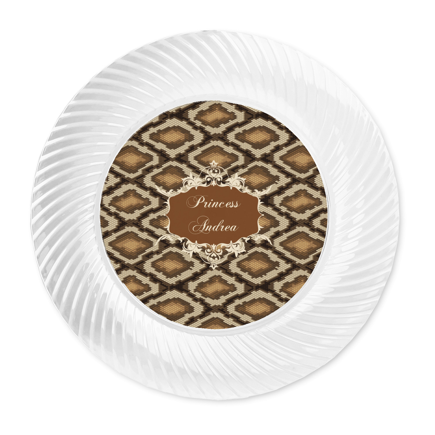 Snake skin print is currently trending and so we created this incredibly beautiful design with a snake skin background in classic browns and beige. The gorgeous label is one of the labels in our floral frames collection. It looks like a crown and thus we chose the personalization to include "princess".